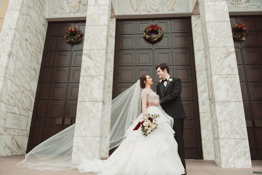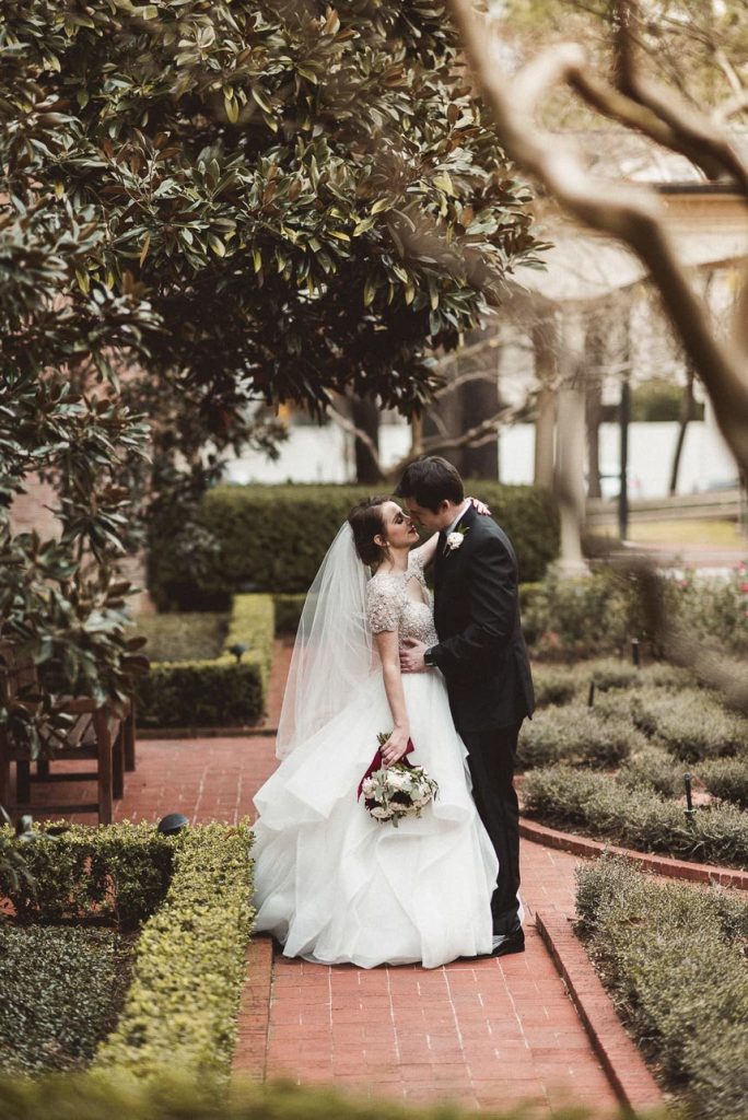 From the bride: “Our wedding day was absolutely wonderful! After almost a full year of planning, the day came together better than I could have ever expected. The entire color theme for the wedding was based on the favors – homemade blueberry jam. Ward and I picked the blueberries ourselves and made the jam with the help of my mother. The dark red color of the jam inspired the wine accents throughout my wedding. It was the perfect favor for people to take home that Ward and I had poured so much love into. We wanted everyone to fully appreciate how much it meant for them to attend our wedding.”
