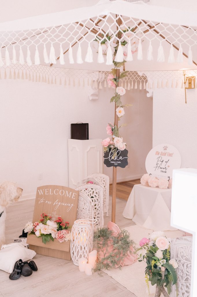 Madison & Cedric’s day was filled with timeless white florals and the sweetest personalized touches. Their adorable pup even made a stylish appearance thanks to A Pup And Company. Guests ended the night with treats that were almost too pretty to eat, including a stunning cake by Cakes by Gina and a gelato bar from Gelatissimo, which everyone loved!