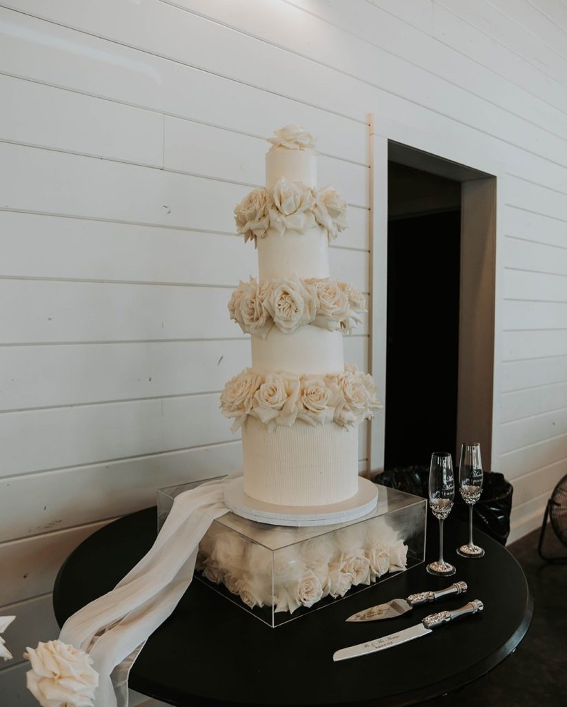 With its all-white interior, soaring windows, and clean, modern lines, Willowynn Barn created the dreamiest canvas for their elegant black-and-white wedding. The ceremony arch framed their “I do’s” in the softest natural light, while the long, candlelit reception tables brought a warm, romantic glow to the evening.