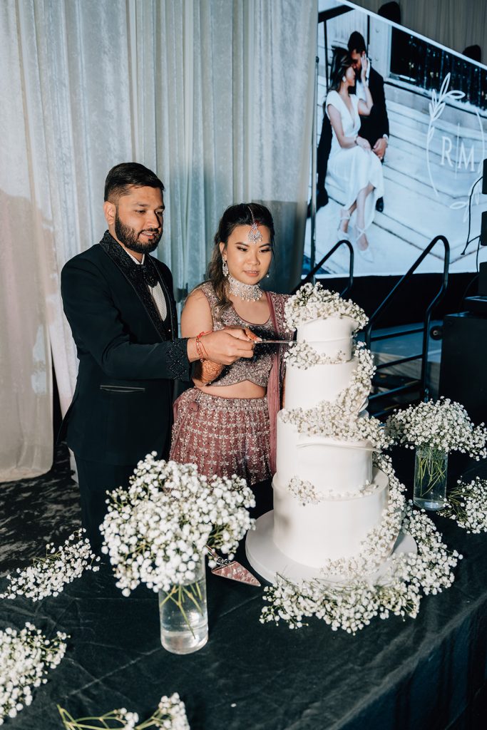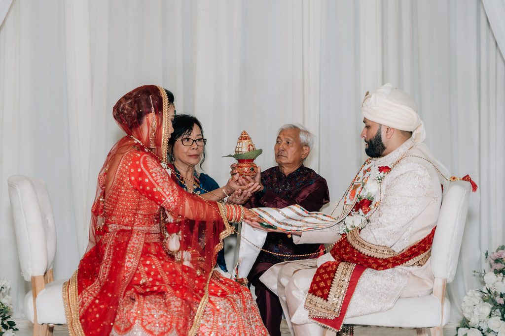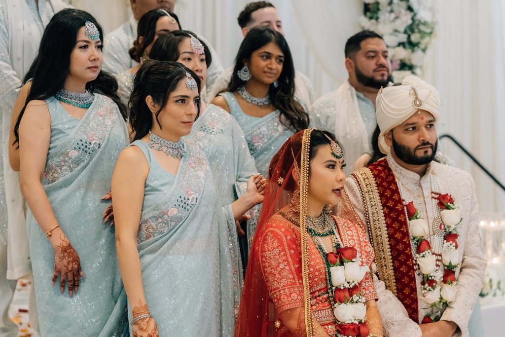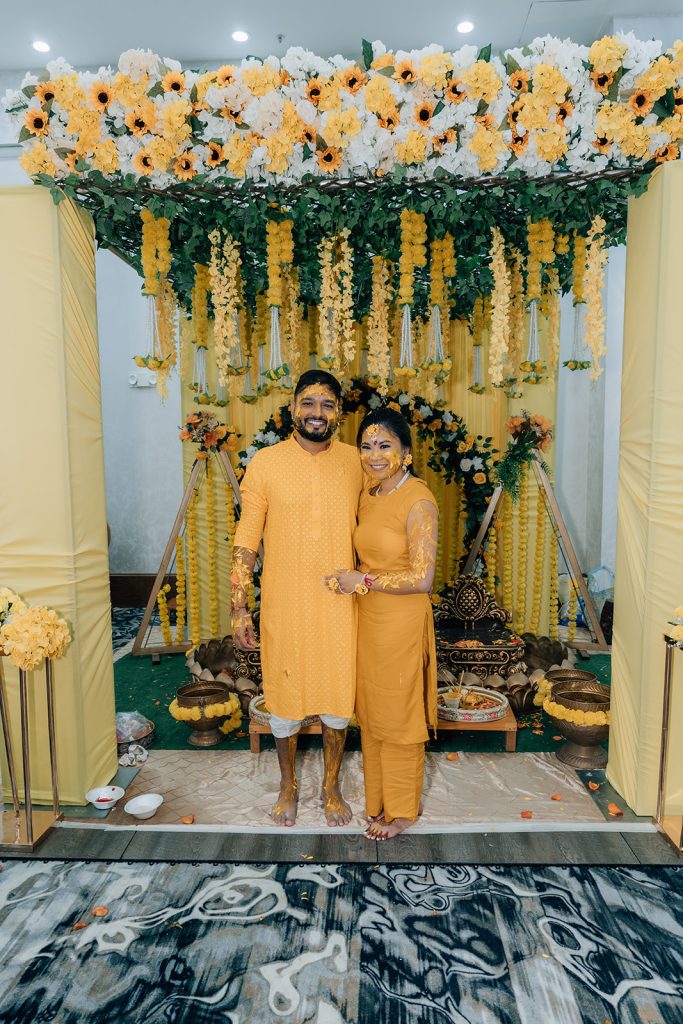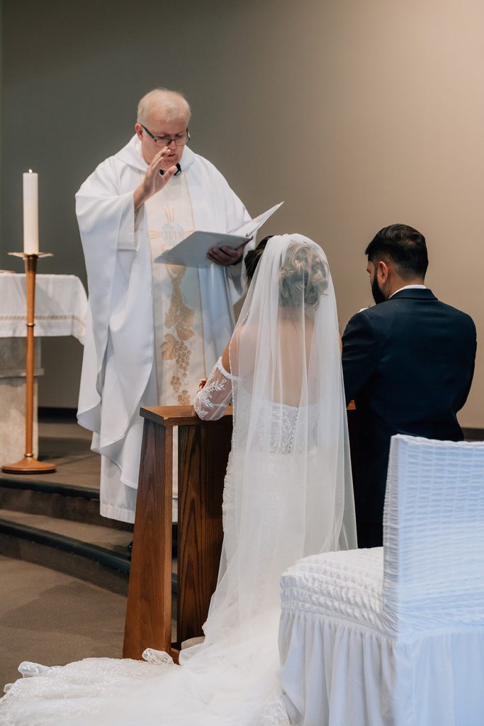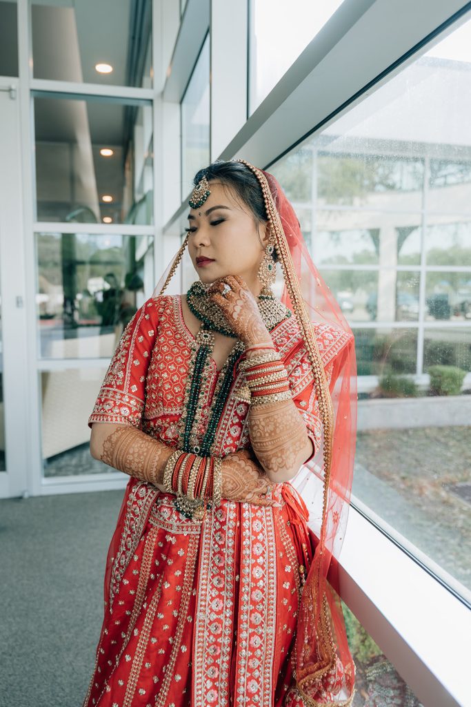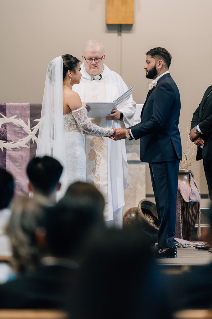 Melissa and Roshan’s wedding was a vibrant three-day celebration filled with color, tradition, and love. The festivities began with a joyful Haldi ceremony surrounded by bright yellow florals, laughter, and blessings from family and friends. Melissa looked radiant in her intricate red lehenga, her henna and jewelry capturing the essence of elegance and heritage. Their Catholic ceremony was a beautiful moment of reverence, filled with heartfelt prayers and blessings as they knelt together at the altar. The celebration continued into a stunning reception where gold accents, candlelight, and towering floral arrangements created an atmosphere of timeless sophistication and joy—a perfect finale to a weekend of love and unity.