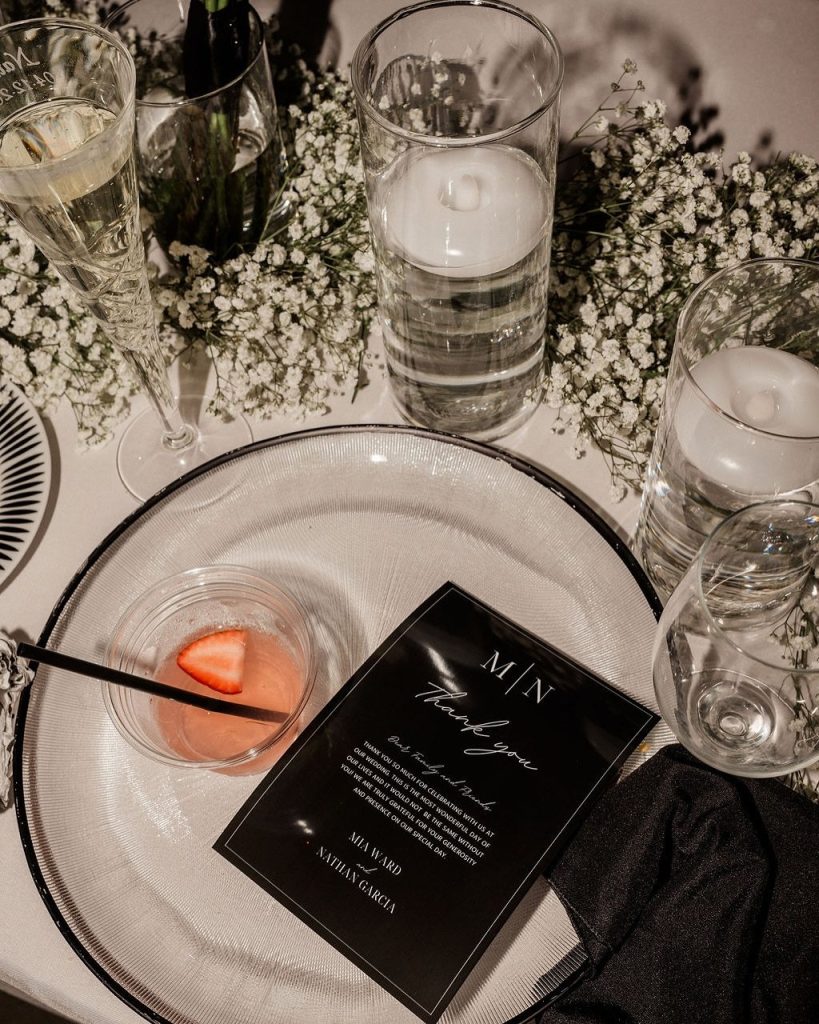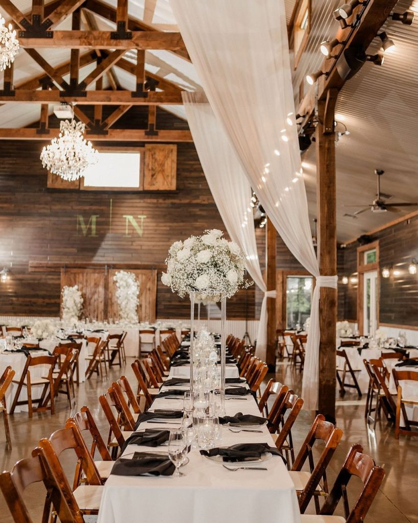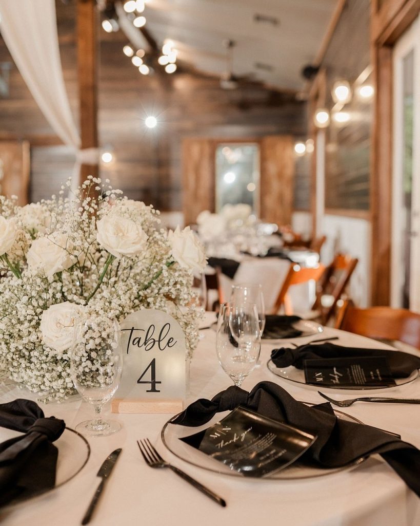 Mia & Nathan’s black and white wedding at Peach Creek Ranch was the perfect blend of timeless romance and modern elegance, with sleek details and lush floral touches!