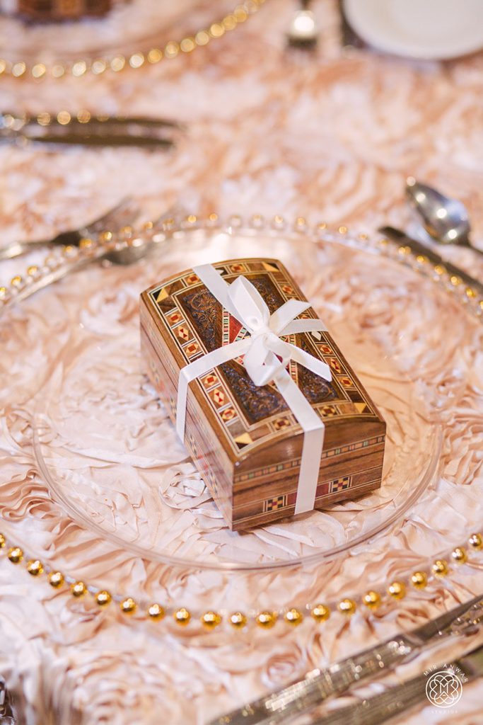 From the bride on the proposal: “After about a year and a half of dating, Mahmoud proposed! Our proposal was an intimate and traditional Middle Eastern proposal where his family came over to my family’s house and formally asked for my hand in marriage. During our engagement party at Chateau Crystale, however, Mahmoud went down on one knee and proposed. It was a beautiful blend of our American and Middle Eastern roots.”