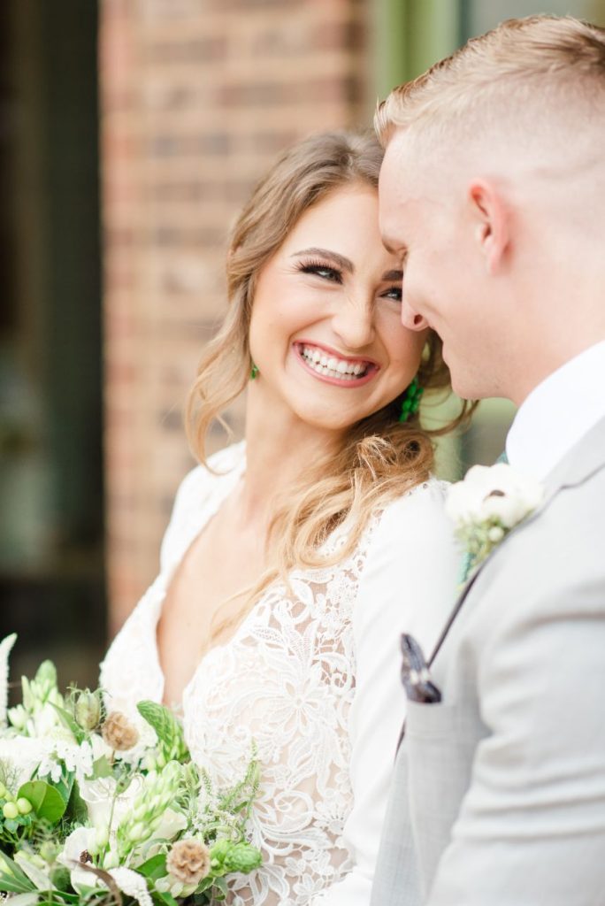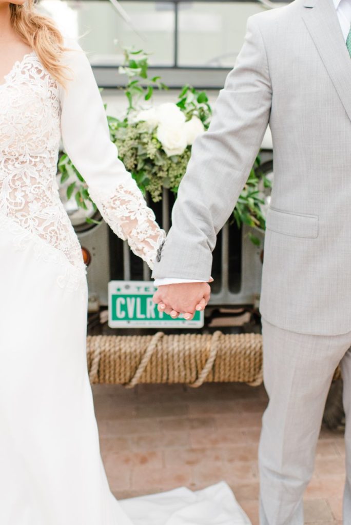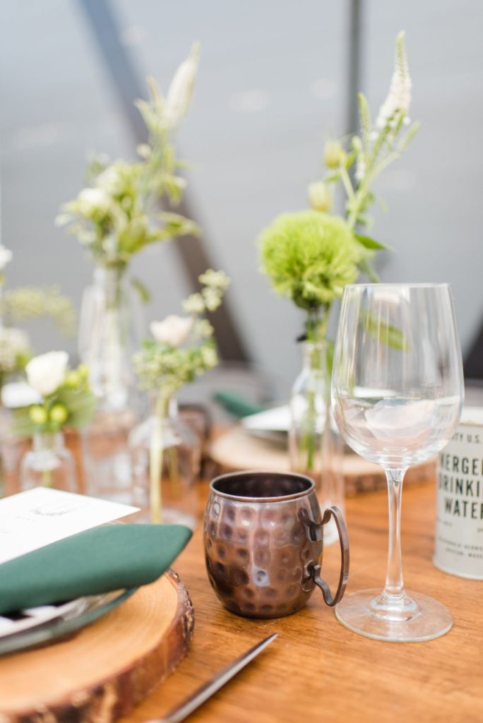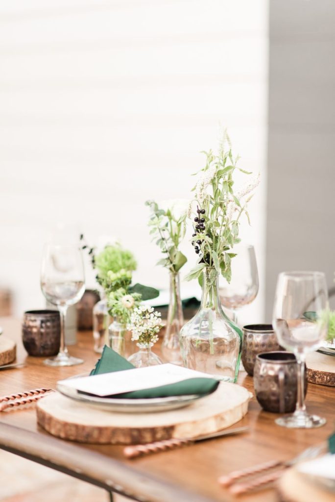 Happy Memorial Day! This military minimalist wedding inspiration has us thinking of that “Travelin’ Soldier” the Dixie Chicks sang about, and it’s giving us major heart eyes! Planned and styled by Two Be Wed, this shoot combines the spur-of-the-moment feel of an elopement with all the sweet details of a wedding. Rustic and masculine settings and elements contrast beautifully with feminine lace, lush florals and greenery. This model stuns in a long-sleeve, lacey gown with flattering sheer cutouts from Whittington Bridal, while tablescapes of rustic wood slice place settings and hammered copper mule mugs work to bring everything together. Our favorite part about this military minimalist wedding inspiration is the adorable pup appearance – with the whole day elegantly captured by Kati Hewitt Photography. Cheers!