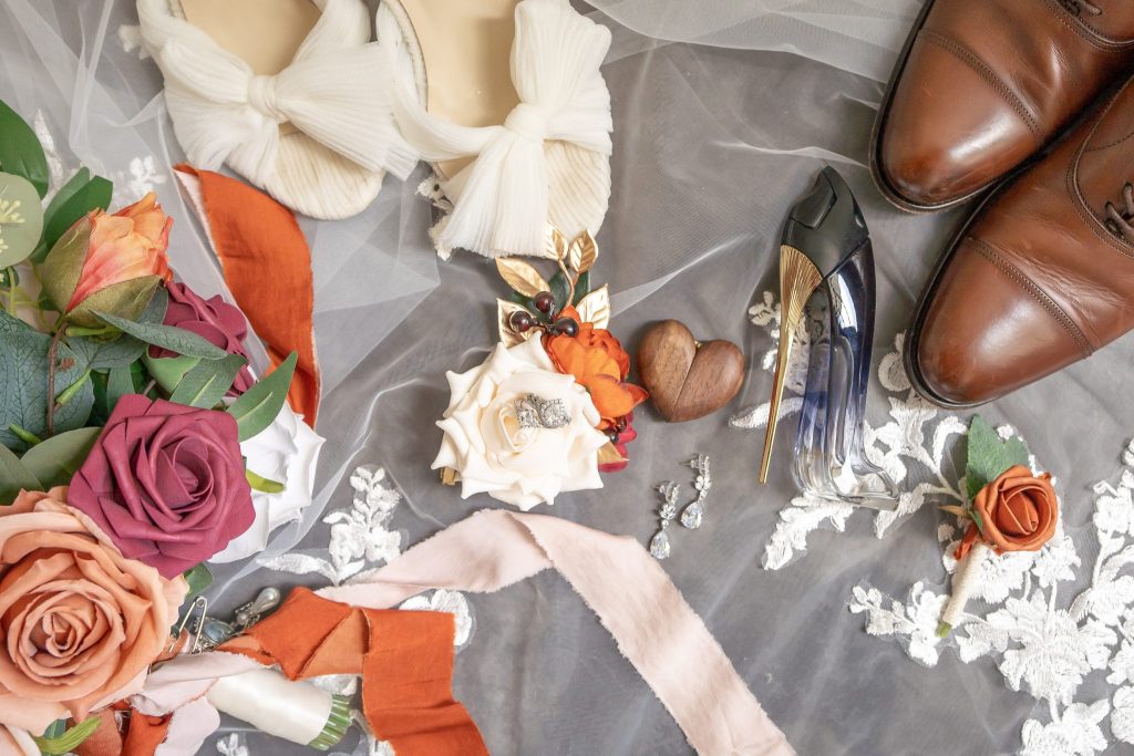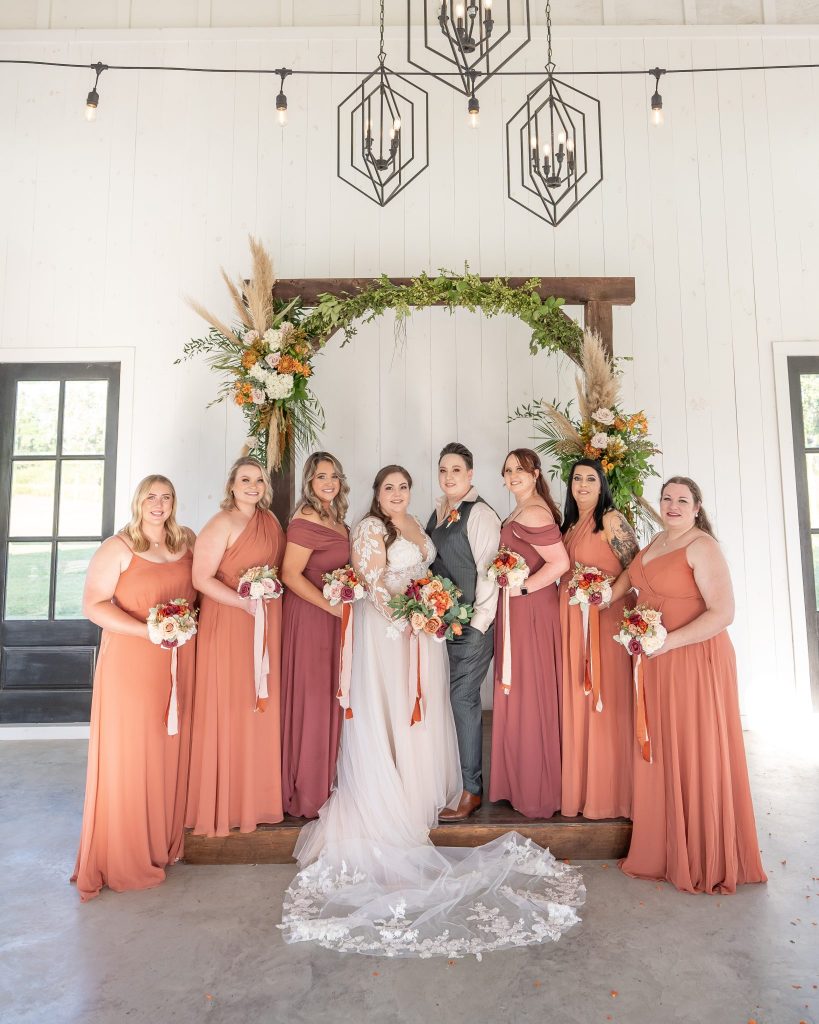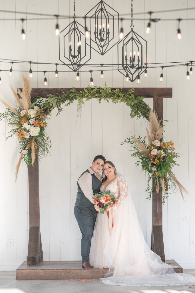 This bohemian wedding with an amber toned color palette took place in a modern barn setting with intimate details.