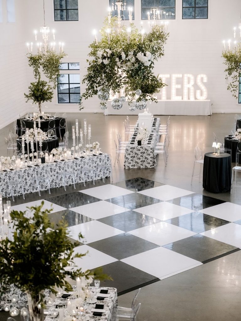 Britta and Gabe’s wedding at Boxwood Manor was the perfect mix of classic and fun with black and white details and checkered dance floor from Elevated AV Production.