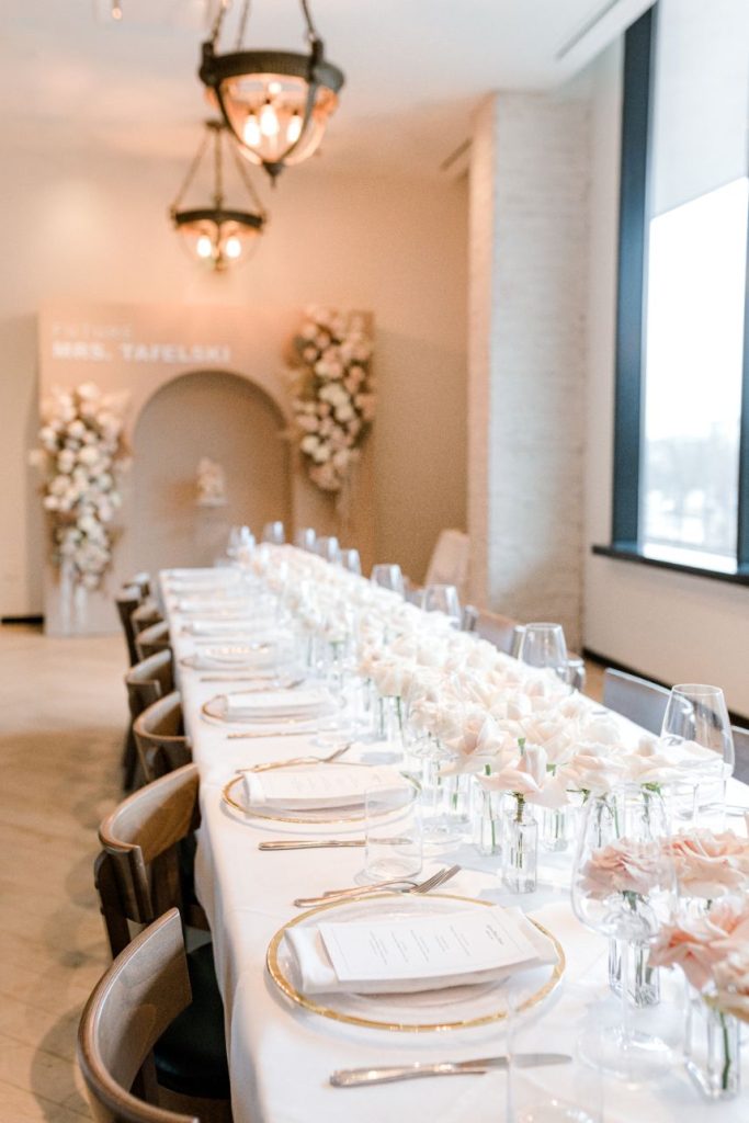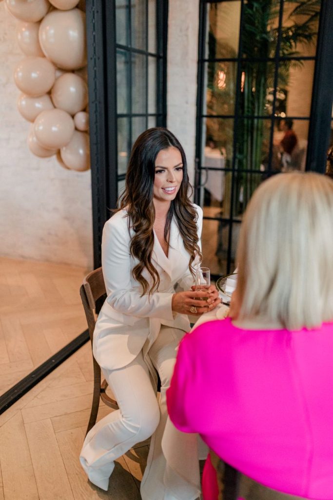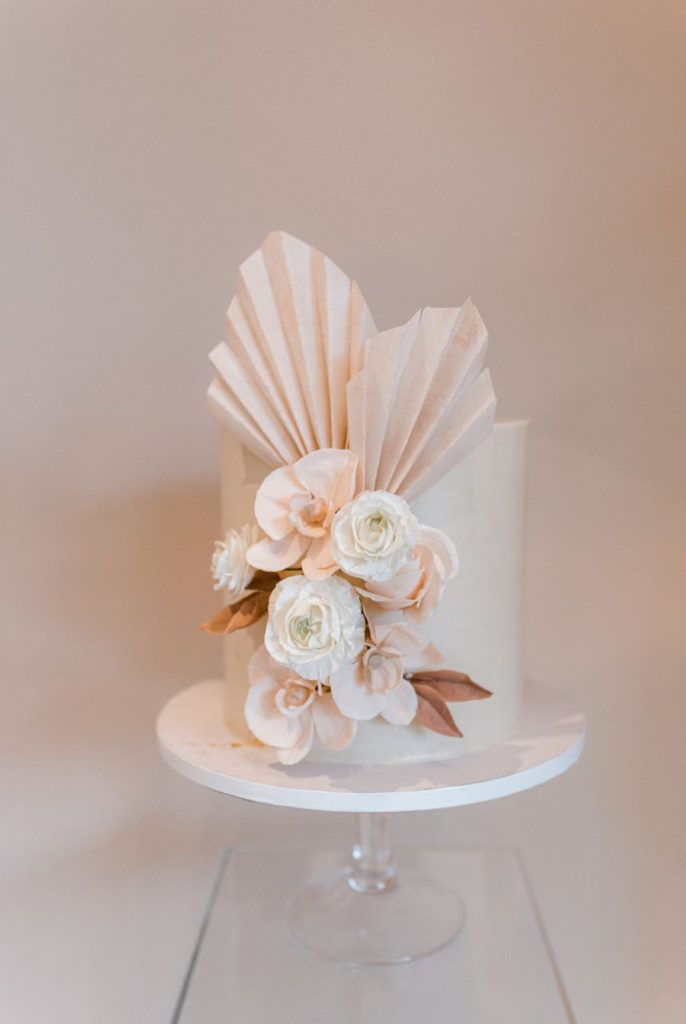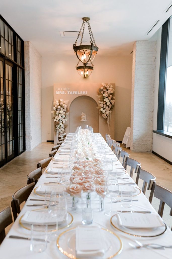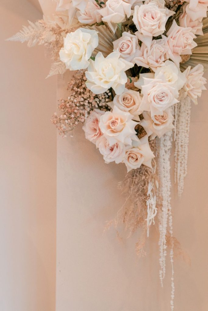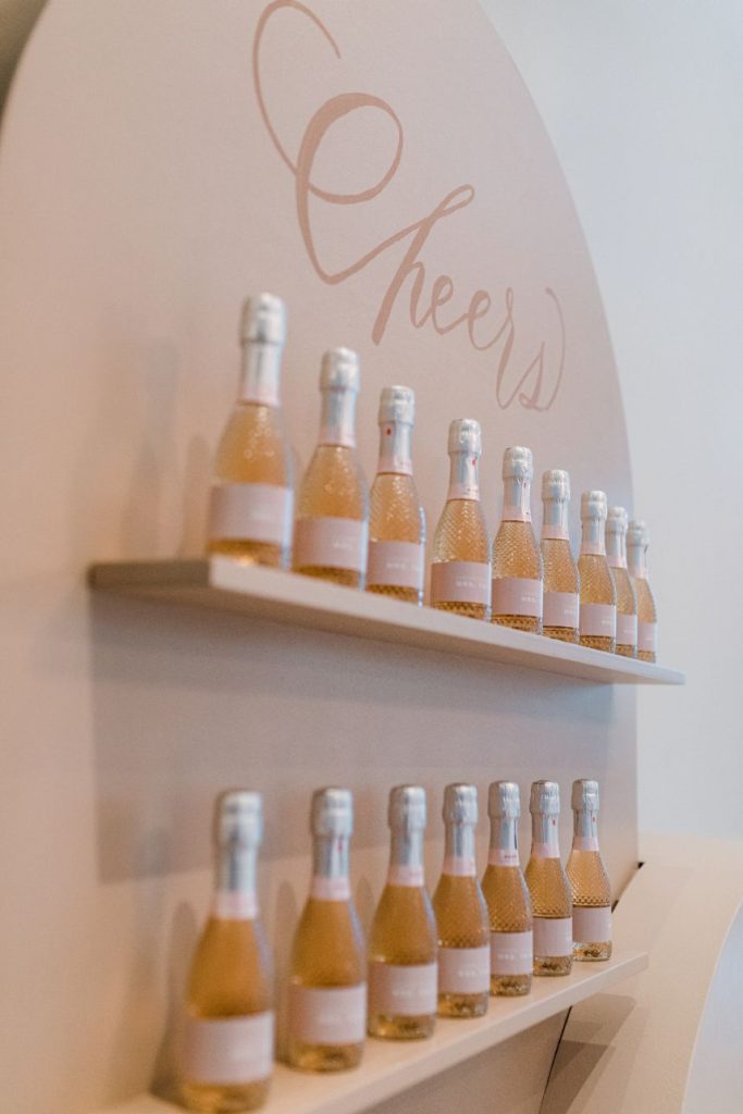 With Logan officially #OffTheMarket, this gorgeous gathering was the perfect way to celebrate her future marriage and the switch to Mrs. Tafelski! Combining elegant and designer-inspired décor with earthy, boho touches adds just a smidge of softened southwest style. Modern, arched shelves held bubbly champs with personalized stir sticks, and guests helped themselves to mini rosé bottles donning her soon-to-be last name as everyone mingled about the room. All eyes were forward, though, to the gorgeous setup of florals in peach, nude and blush shades accented by dried palms for tropical texture, a cute cake to match, and the future Mrs. Tafelski wearing the most darling bridal pantsuit in chic white. Her dreamy celebration makes for the ultimate bridal shower inspiration that you can obsess over for yourself in the curated gallery below. Cheers!