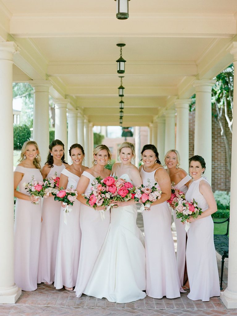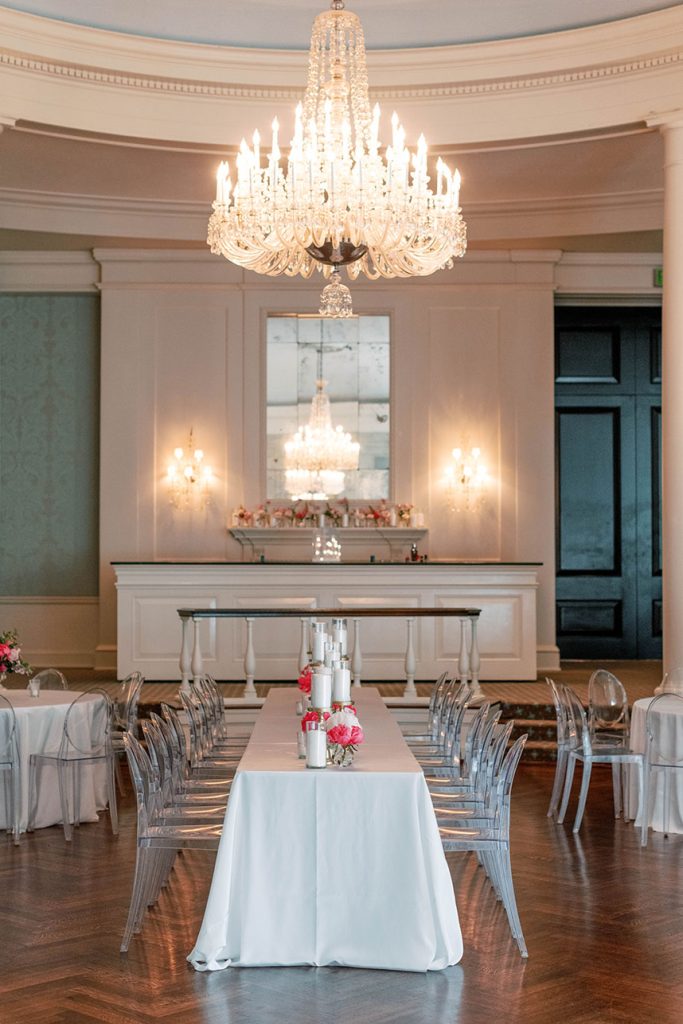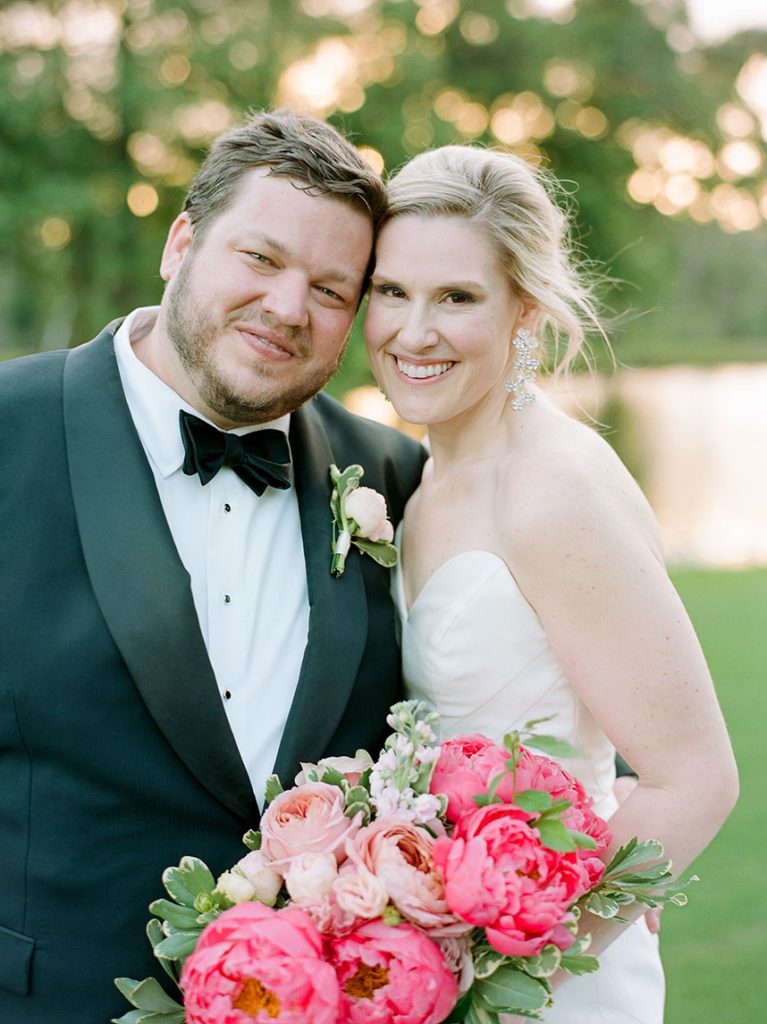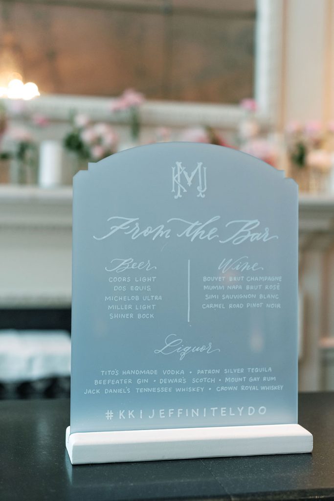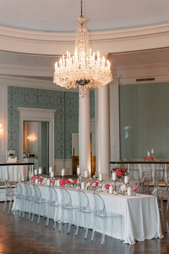 This modern country club wedding truly has us tickled pink! Each floral arrangement by Bramble & Bee in variant shades of pink brought serious pops of color to go with white and light blue accents. Besides serving some seriously gorgeous looks, KK’s lovely silk bridal gown from Mia Bridal also served as a special location for her “something borrowed” – pieces of her mom’s, older sister’s and younger sister’s wedding dresses were sewn into the lining of her own dress, making for the most special keepsake from her own big day. Paired with her hair and makeup by Hey Lovely, KK looked like an absolute dream! With Josh and Dana Fernandez there to capture every detail, we get to relive this special day with their adorable wedding photos below. Scroll to see all the modern details of KK and Jeff’s day and why it has us tickled pink! Cheers to Mr. and Mrs. Miller!