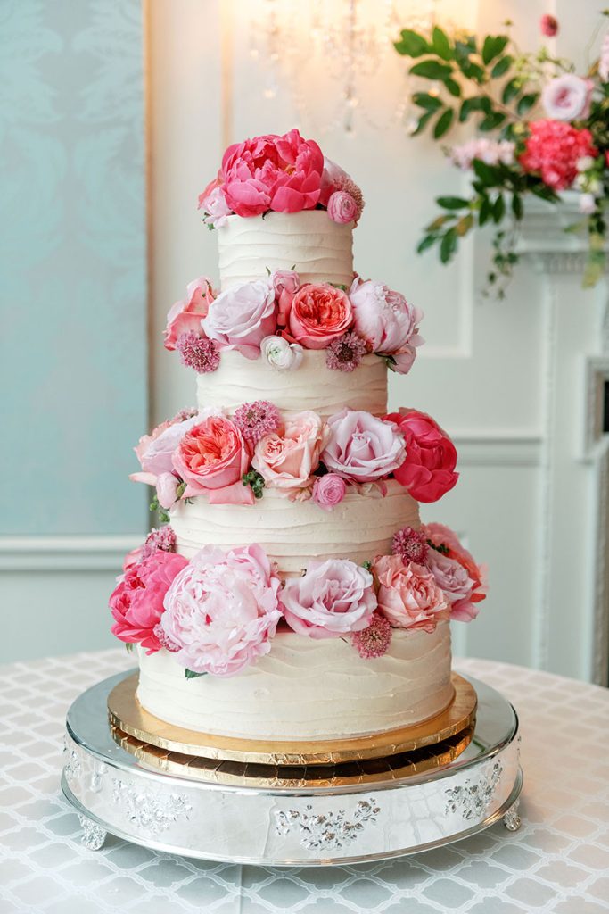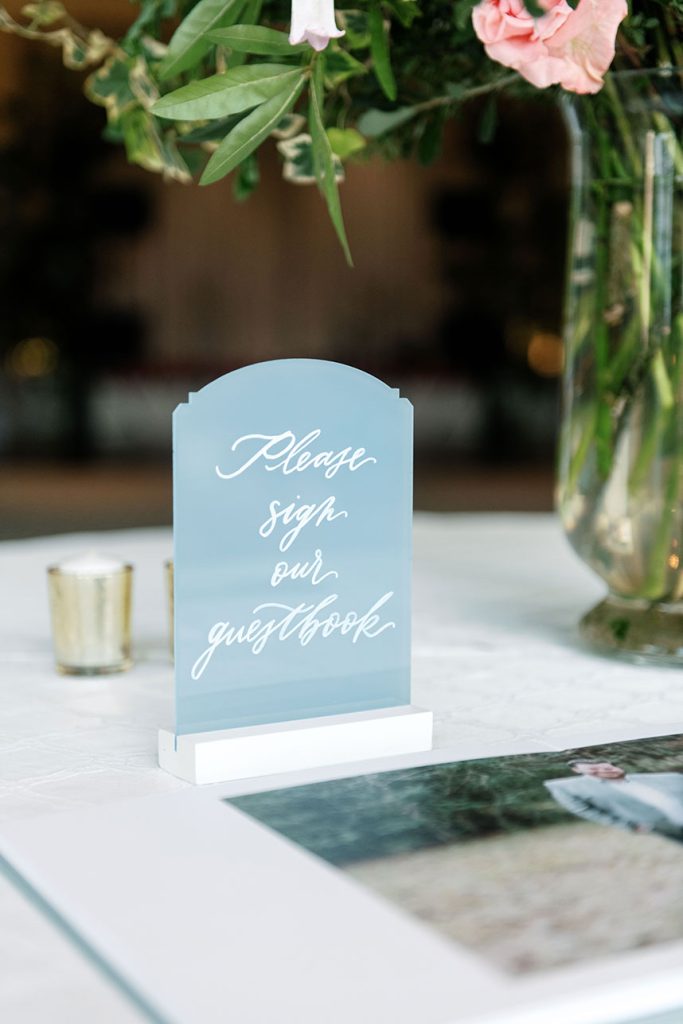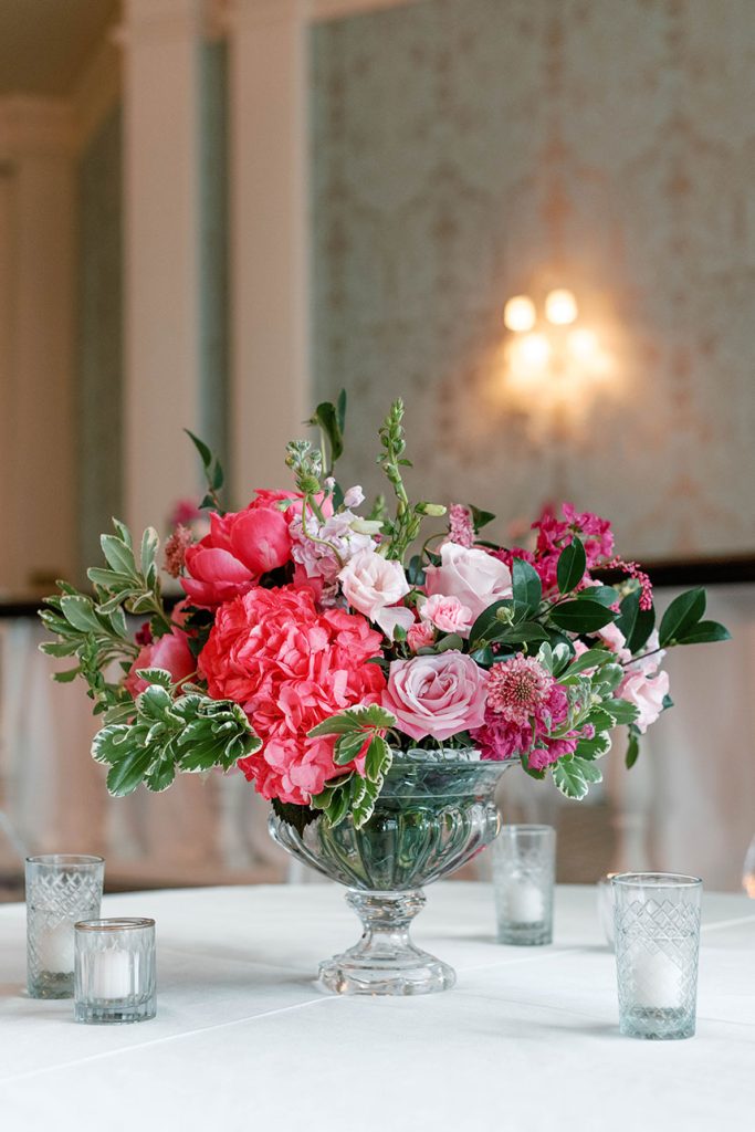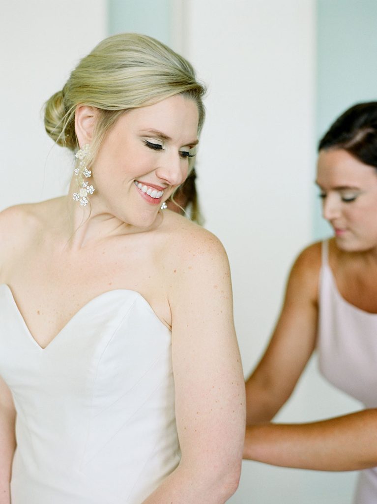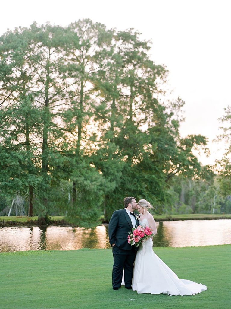 This modern country club wedding truly has us tickled pink! Each floral arrangement by Bramble & Bee in variant shades of pink brought serious pops of color to go with white and light blue accents. Besides serving some seriously gorgeous looks, KK’s lovely silk bridal gown from Mia Bridal also served as a special location for her “something borrowed” – pieces of her mom’s, older sister’s and younger sister’s wedding dresses were sewn into the lining of her own dress, making for the most special keepsake from her own big day. Paired with her hair and makeup by Hey Lovely, KK looked like an absolute dream! With Josh and Dana Fernandez there to capture every detail, we get to relive this special day with their adorable wedding photos below. Scroll to see all the modern details of KK and Jeff’s day and why it has us tickled pink! Cheers to Mr. and Mrs. Miller!