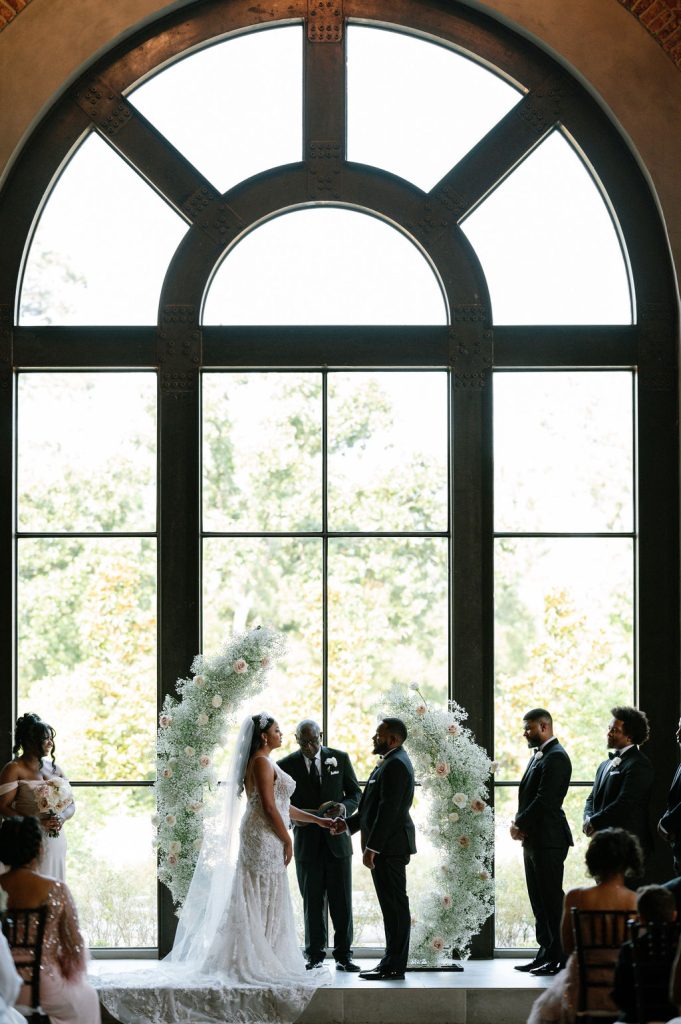 “Our wedding was a dream come true, surrounded by our family and friends! The venue was a beautiful industrial castle, which gave us an amazing atmosphere. Walking down the aisle to my favorite song being played on a saxophone was always a dream on my mine. Everything was beautiful it was so hard to take in everything. My husband was adamant about not crying while I walked down the aisle but that change as soon as the double doors opened. To see all of our planning and small details come together was truly breathtaking.” – Hannah, bride