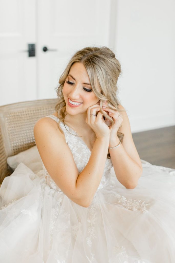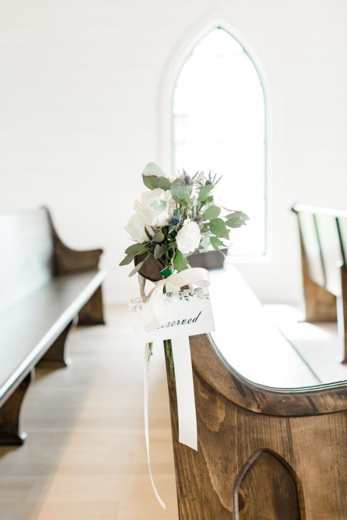 This modern rustic wedding features the softest sage and ivory color palette, and every beautiful detail of it was captured expertly by Weddings by Westy, the couple’s favorite wedding vendor! Caitlin and Christopher’s sophisticated spin on modern rustic style resulted in a light-and-airy, simply gorgeous February wedding. Caitlin is show-stopping in her floral, layered tulle wedding gown from Brickhouse Bridal, complemented by loosely curled locks and a soft pop of pink on her lips. Clean and simple white linens adorned tablescapes including the prettiest minimalist centerpieces and the perfect rustic touch of wood accents in their reception space, where the fun never seemed to stop! It’s easy to say this night is one this couple will never forget, as the evening was full of heartfelt speeches and dancing the night away with the people they love. Scroll to watch Caitlin and Christopher’s wedding video from Reverent Wedding Films and to see all the sweet details of this day, captured by Weddings by Westy! Cheers to Mr. and Mrs. Jenkins!