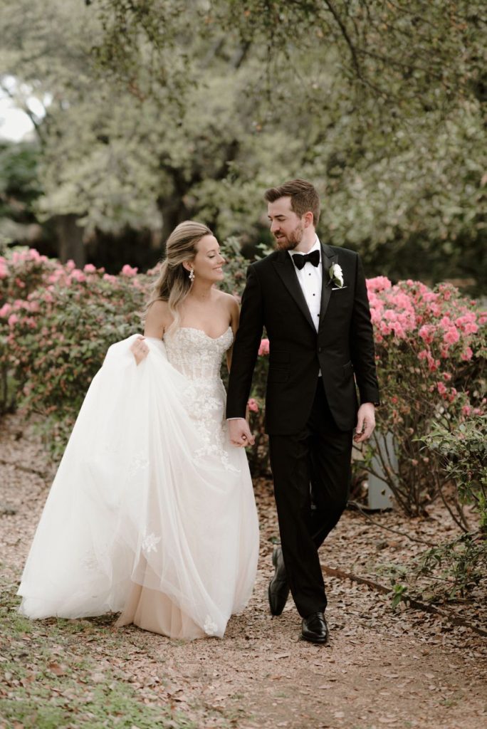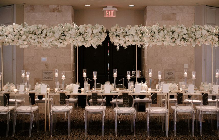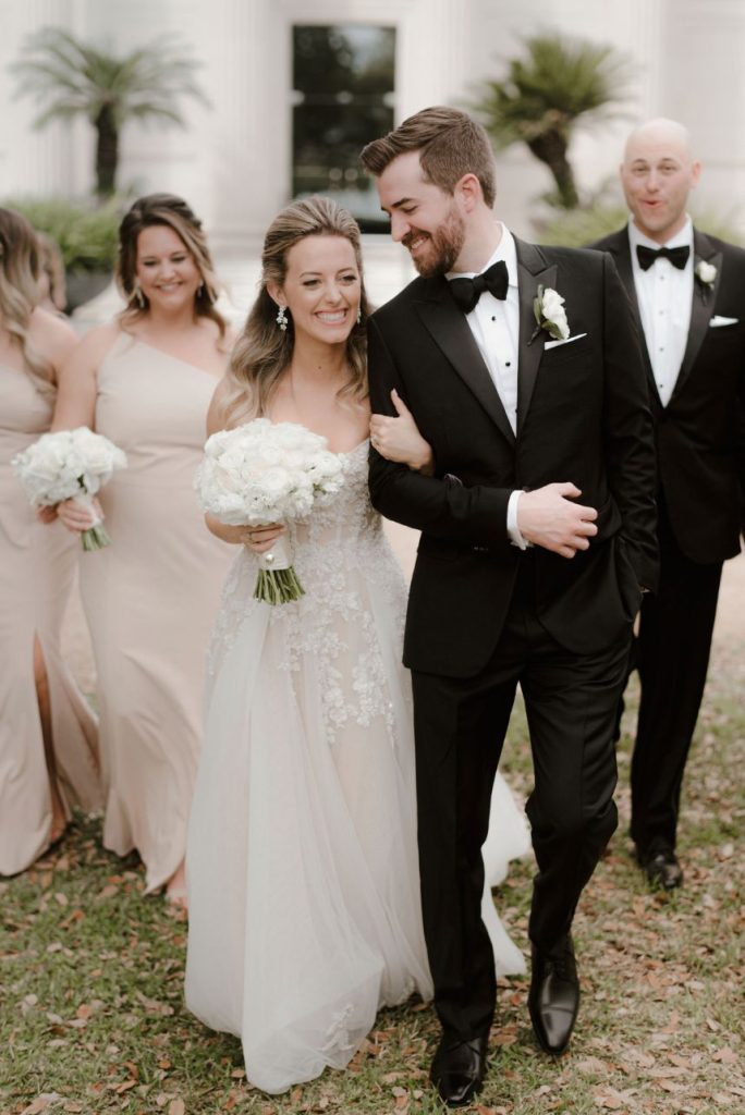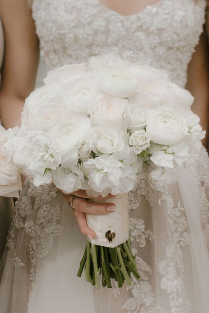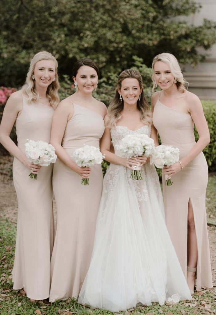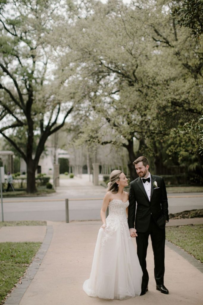 Tiffany and Daniel’s love story was about as modern as they come, so it was only fitting their wedding be just as mod and chic! The pair matched on Bumble and chatted for a few weeks before finally going on their first date at Boheme in Montrose. Tiffany was nervous at first, but a mutual friend who happened to work with Daniel ensured her he was worth it. A few hours and glasses of wine later, they had already carried on enough conversation for Tiffany to be smitten. The pair continued to fit dates in between dental school finals and evening phone calls – they just couldn’t get enough of each other! Daniel popped the question with a romantic beach proposal in Tulum which led to the breathtaking occasion that you see below: their modern white wedding planned by Two Be Wed! On the big day, Tiffany sipped mimosas with her best gals while the stylists at Etoilly Artistry got to work on everyone’s hair and makeup. Later on, the lovebirds exchanged gifts and letters that they had written beforehand and did a first look outside where they shared smiles, tears, and a few warm hugs.