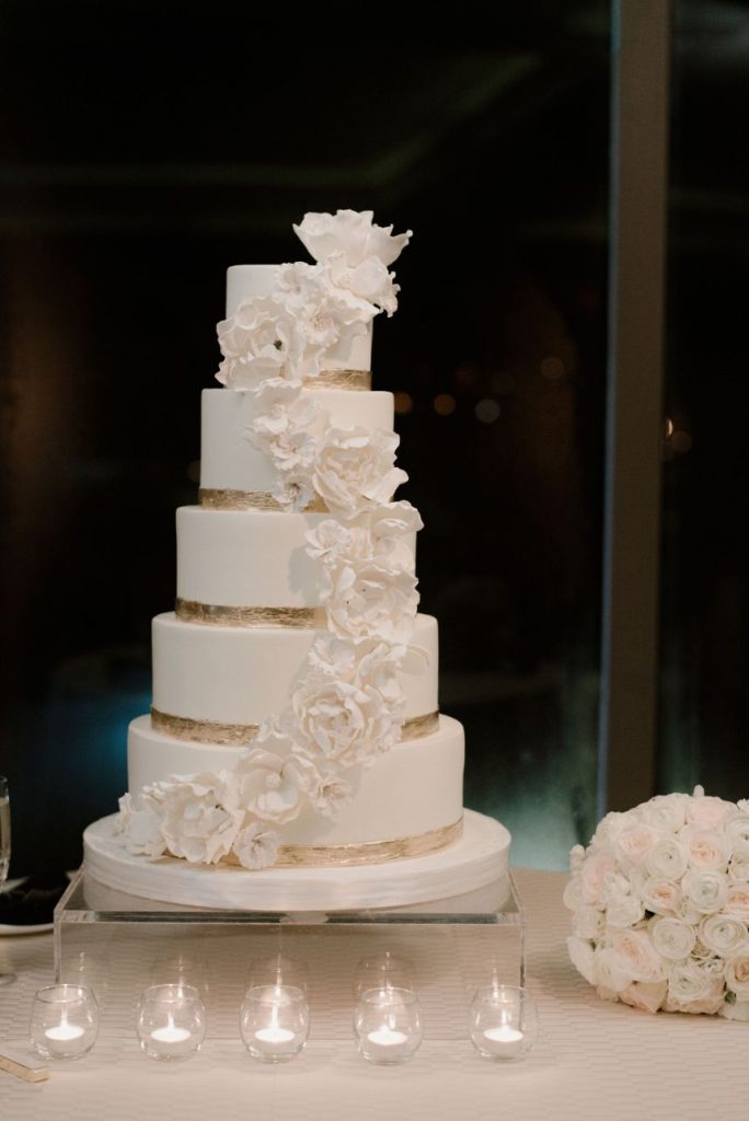 Tiffany’s mom walked her down the aisle in lieu of her dear late father who passed in 2012, and the bride donned a gorgeous strapless gown covered in playfully pretty floral appliqué. They said “I do,” and their tear-jerking chapel ceremony was followed soon after with a cocktail hour and lavish reception full of sleek, glam details. A modern art feel came to life in this reception scene full of candlelit tablescapes lined with opulent crystal and stunning place settings. Their luxe colors and textures meld beautifully from silky champagne bridesmaids’ gowns down to the five-tiered cake trimmed with gold. Once the party started, they couldn’t stop as the wedding party jammed out to one of the bride’s favorite live bands she used to go watch weekly while in college at Austin. Guests enjoyed confetti cannons and a late-night snack of churros, which were a choice of the groom’s. Reverent Wedding Films caught all the fun in action for bride and groom to enjoy over and over again, and at the end of their modern wedding day, Tiffany and Daniel exited under a shower of sparklers and headed off to an after-party to keep the entertainment going all night long! Read on for a note from the bride regarding what she learned throughout the whole wedding planning process. Cheers to Mr. and Mrs. Miles!