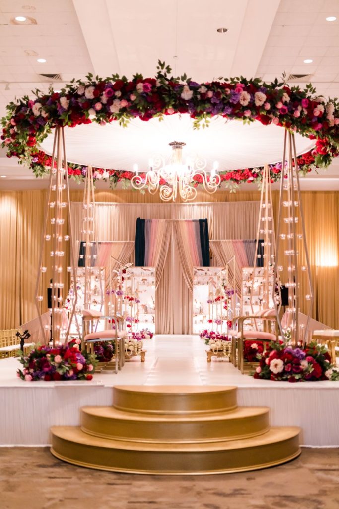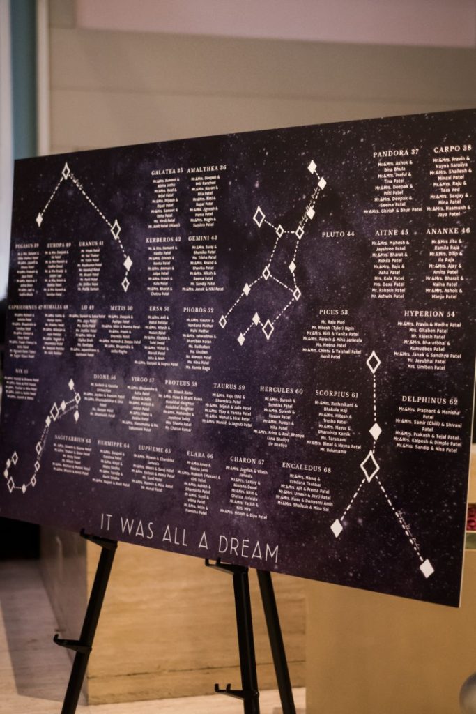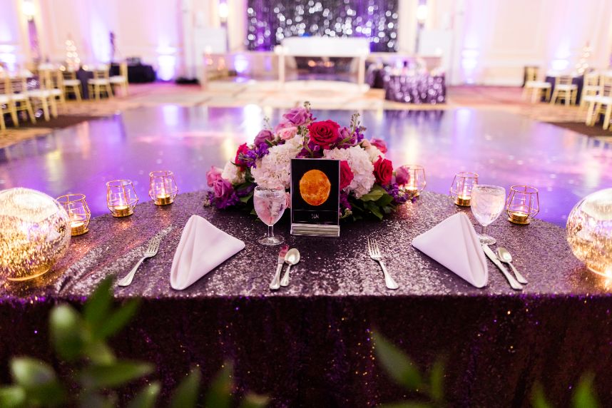 With the help of The Storybook Event, Sridhi and Kishan had the ultimate moody, romantic affair they had always dreamed of! Full of tradition and details that are out of this world (pun intended), a moody color palette of dark fuchsia, plum and blush with pops of gold accents infuses every element of this day. From chic floral installations to textured sequin linens, The Storybook Event truly seemed to incorporate every detail the couple wanted to ensure their big day was all about them. If you were to ask bride, Sridhi, about how she would describe her day, she would say one word – excitement! Scroll to read about the bride’s favorite detail and to see all of the celestial inspired elements of this Hindu wedding, like the cake and seating chart adorned with constellations. Cheers to the Patels!