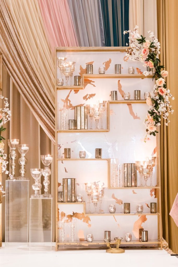 From the bride about her favorite wedding detail: “In the Hindu culture, the wedding ceremony occurs on a center stage. We thought it would be fun to move that stage to the center of the room so we could be surrounded by our friends and family.”