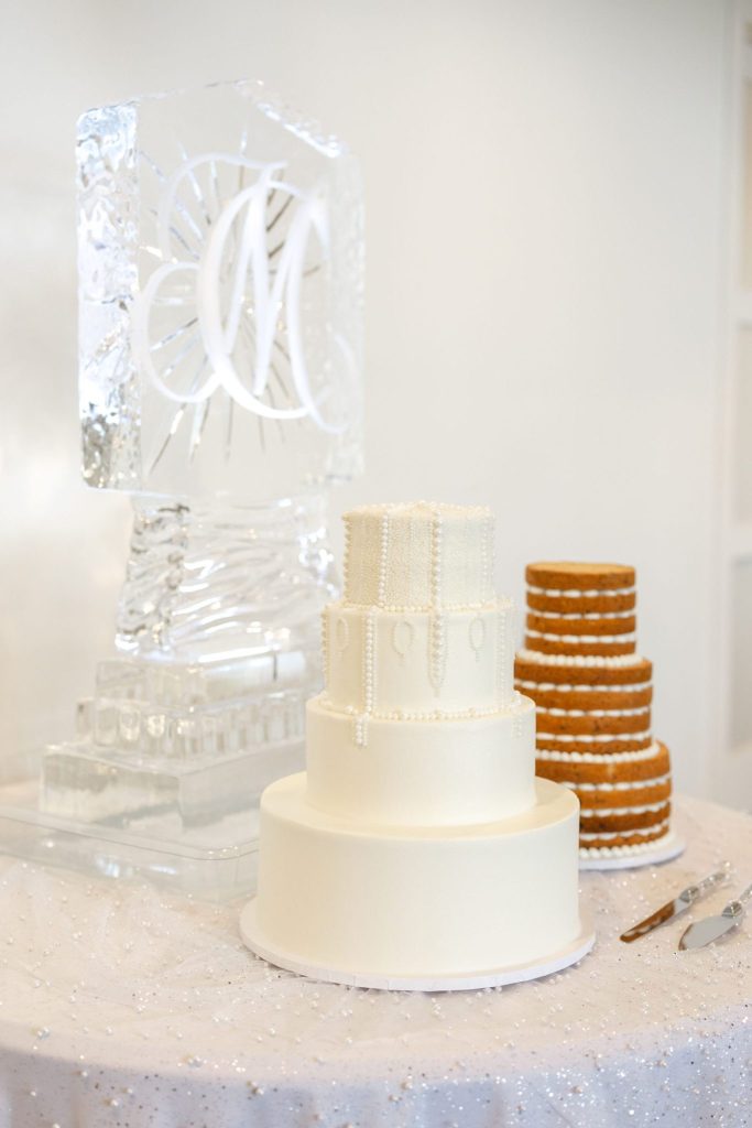 Morgan & Colson’s wedding was the epitome of elegance! Their ceremony featured a lush white floral arch, creating a soft, romantic atmosphere as they exchanged vows. The reception was equally stunning, with ethereal white trees transforming the space into a whimsical dreamscape. An elegant ice sculpture served as a striking centerpiece, while subtle pops of greenery added depth and freshness to the all-white palette.