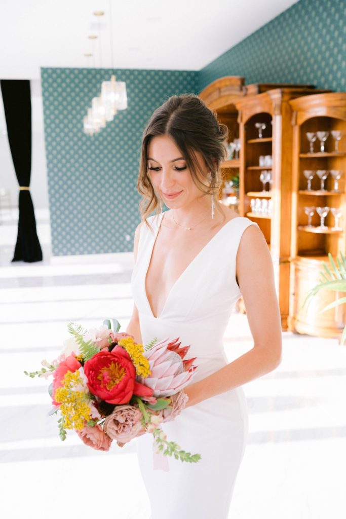 This styled shoot at the The Homestead venue is a perfect contrast between a neutral venue and a bold, vivid color palette, styled and curated by Good as Gold Weddings.