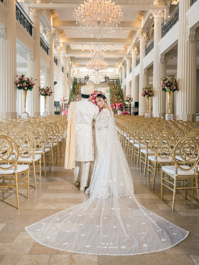 Nikki & Avinash’s wedding at The Corinthian Houston felt grand and immersive from the very beginning, with soaring columns, glowing chandeliers, and intentional details that completely transformed the space.