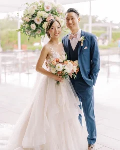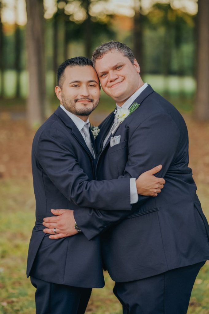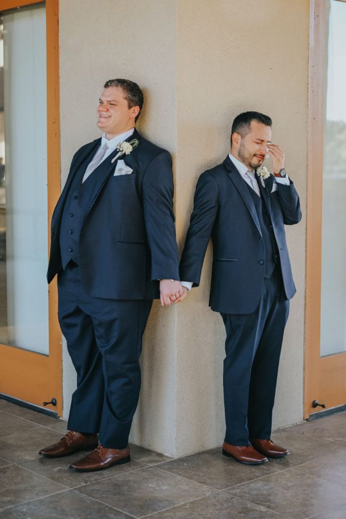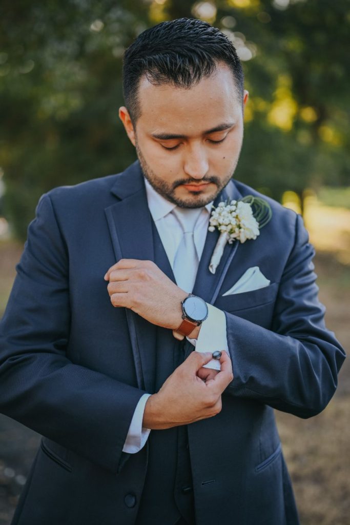 We can’t get enough of all the navy blues in Obed and Stephen’s modern rustic wedding at The Woodlands Country Club. The couple met online while Stephen was enjoying a family vacation in South Padre Island and Obed was only a couple of miles away in Brownsville, Texas. They talked long nights over Facetime and learned about each other before meeting for the first time in Brownsville in July 2020. After doing long-distance for nine months, things got much easier when Obed’s family moved to the Houston area. Finally, in July 2021, Obed and Stephen moved in together, and Stephen gave Obed the ultimate surprise. Stephen proposed with a watch instead of a ring and eventually got one to match himself. The two love looking down at their matching watches with their new favorite accessories- their wedding bands.