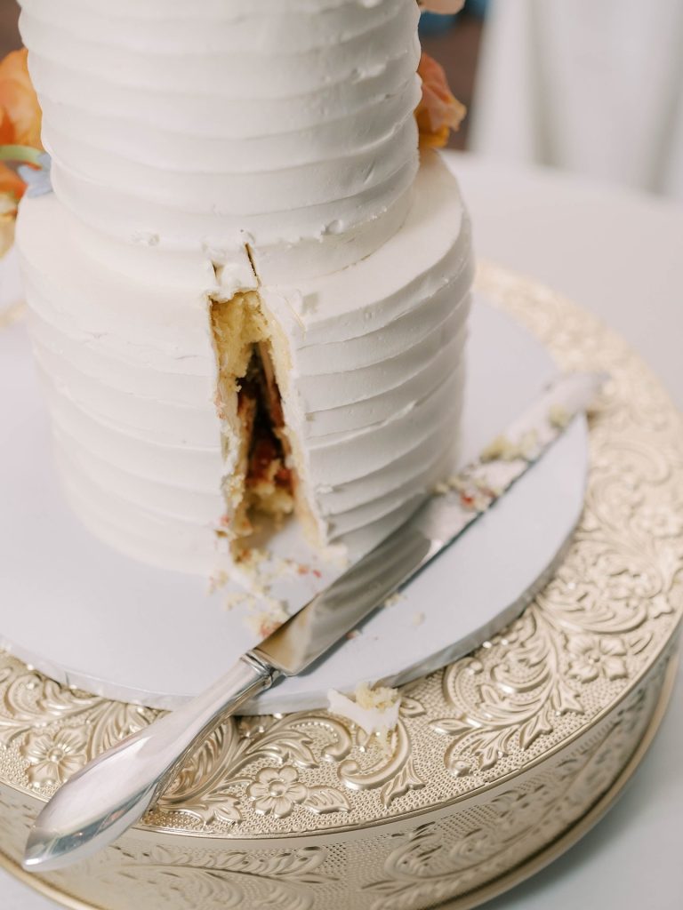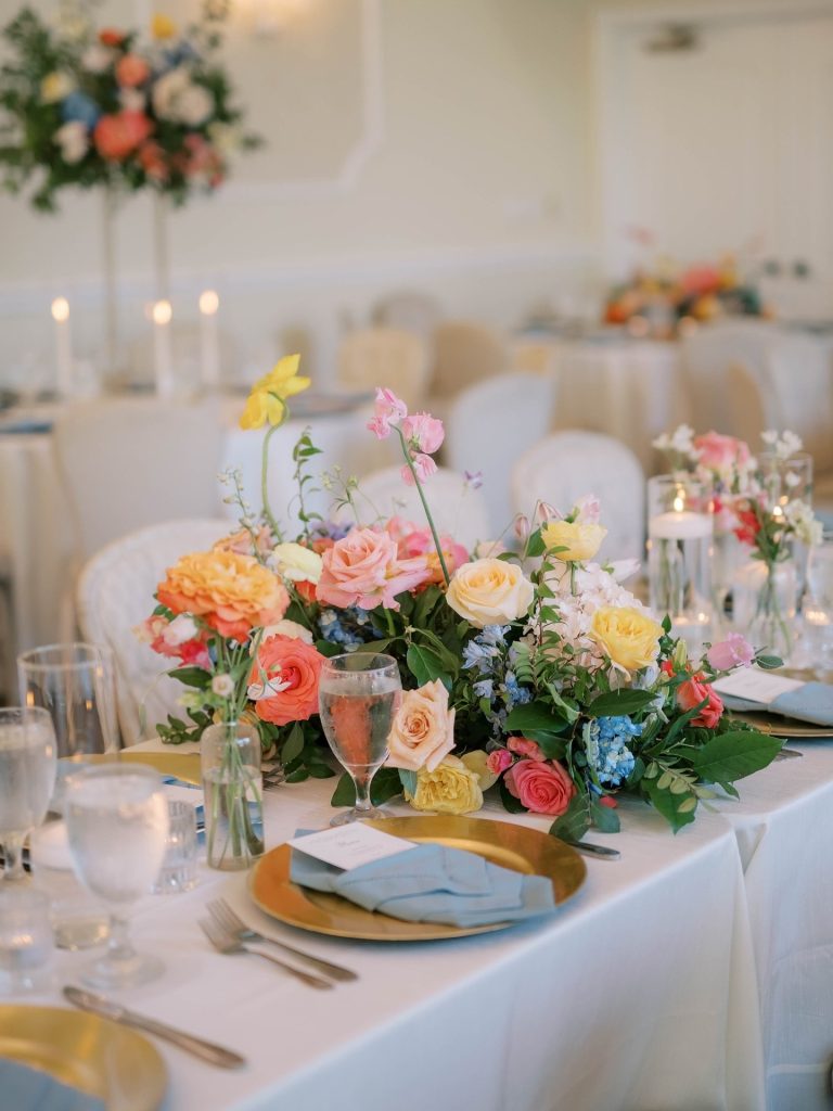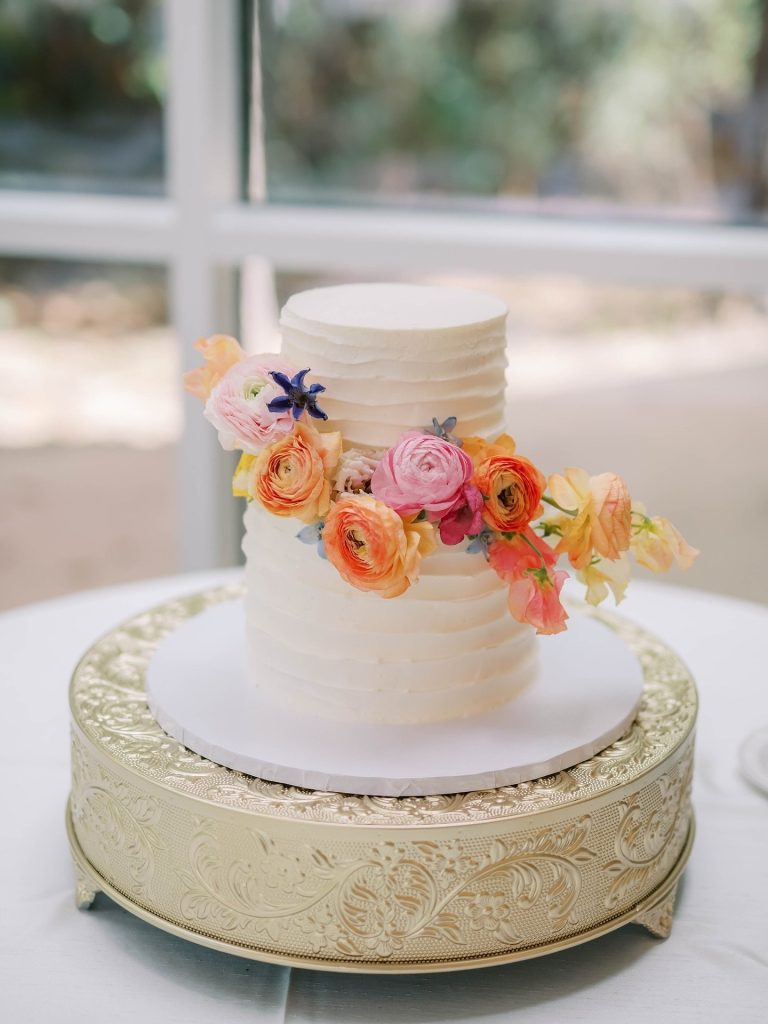 Wanderie Floral Studio created stunning arrangements of pinks, peaches, and blues that brought the garden inside, while The Flour Petal Bakery’s floral-decorated cake tied it all together perfectly.