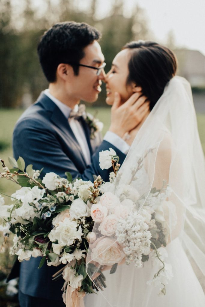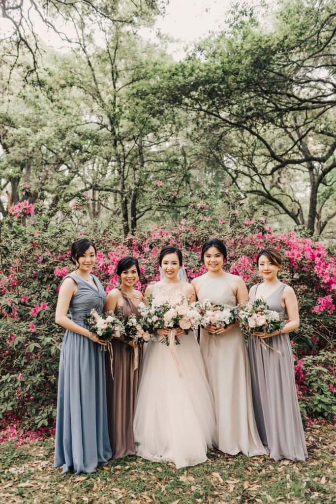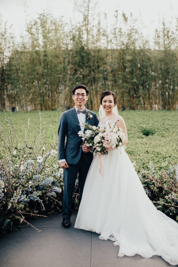 Cindy and Jonathan’s Japanese inspired Houston wedding was everything the couple imagined and more! They explained their vision of a wedding overflowing with Japanese Ikebana style florals to the team at Mibellarosa, and the Houston wedding florist truly made their dreams come true! The couple’s favorite element of the day was the altar which featured a gorgeous asymmetrical semi-circle of lush flowers and branches. Scroll through to see it plus all the beautiful arrangements from Mibellarosa!