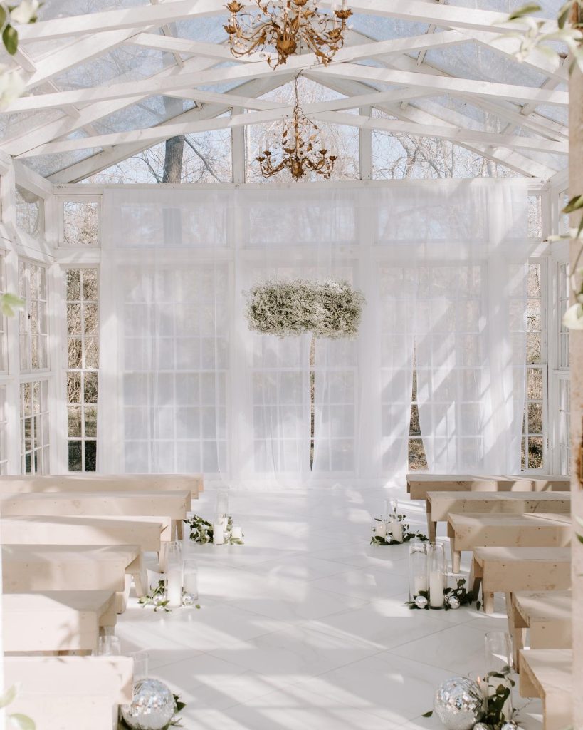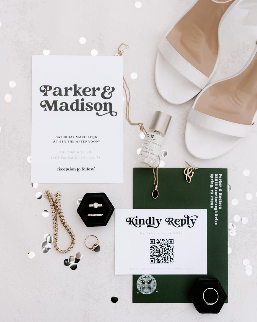 Madison & Parker opted for a minimalist yet groovy wedding set in a modern color palette of greens, golds and white. Going for an overall simplistic mood, their day elevated that vibe with disco balls galore, hanging baby’s breath and sweet personalized details throughout. You also can’t forget about our iconic COVER image that came from their day!!
