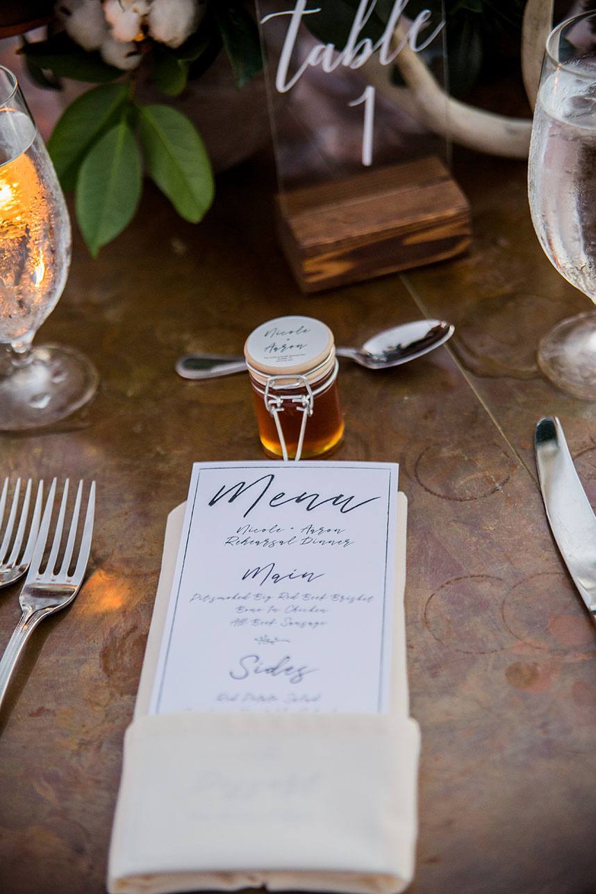 “As favors, we had a local honey company fill jars for each person to take home at the end of the evening. We tried to incorporate farm to table as much as possible.”