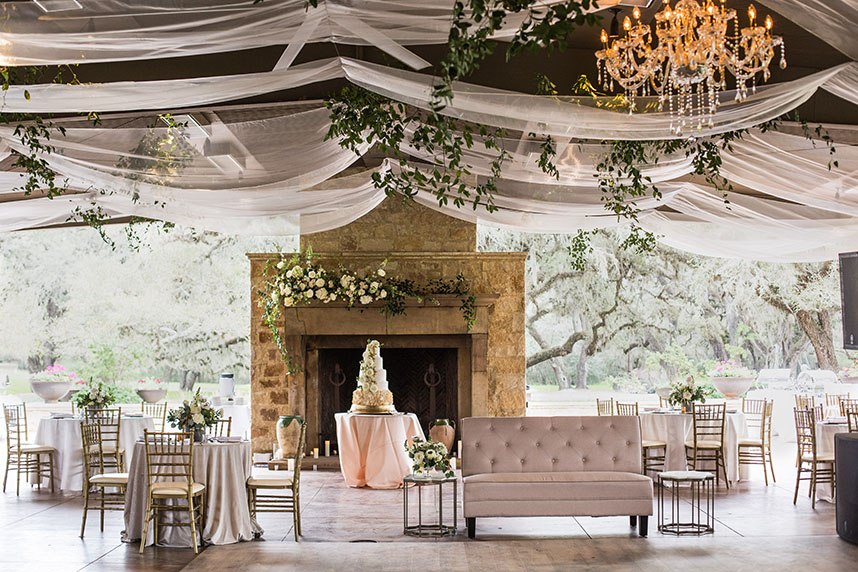 “The bride wanted to drape the ceiling to add a softer touch with the oak trees surrounding all the guests. It was a classic ballroom outdoors!”