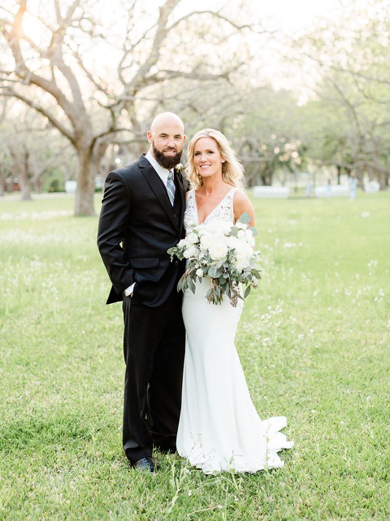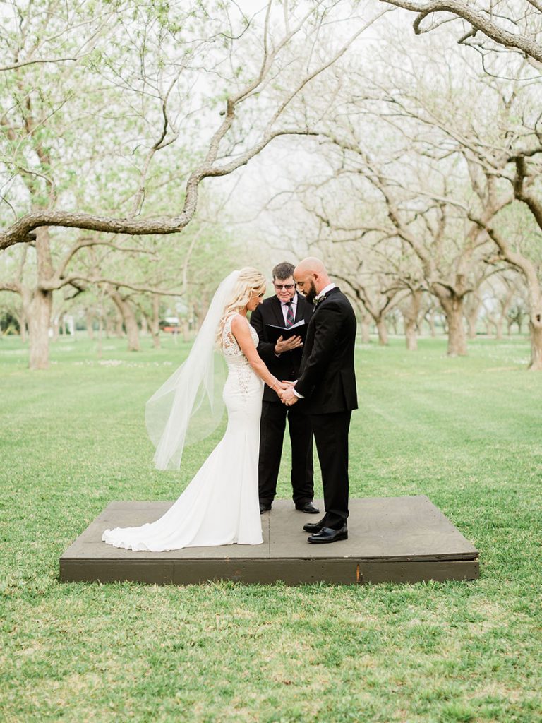 The Orchard at Caney Creek is the most picturesque creekside venue and the perfect place for Lauren Hodge and James Chapman to tie the knot! Wedding planner extraordinaire Michelle Potts with Two Be Wed helped the couple design and plan their spring Houston wedding, and although it rained, they were able to still have the outdoor wedding of their dreams! See the gorgeous photos below!