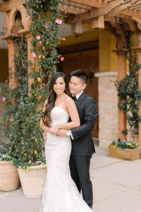 From the bride: “I had quite a hike from the bridal house to the aisle with all eyes on me. From the second I stepped outside, I could see James’ back facing me. My heart raced as I got closer and butterflies filled my stomach. As soon as my feet touched the aisle, my soon-to-be husband turned to me and my nervousness floated away. He looked so handsome, and I couldn’t believe I was minutes away from being his wife.”