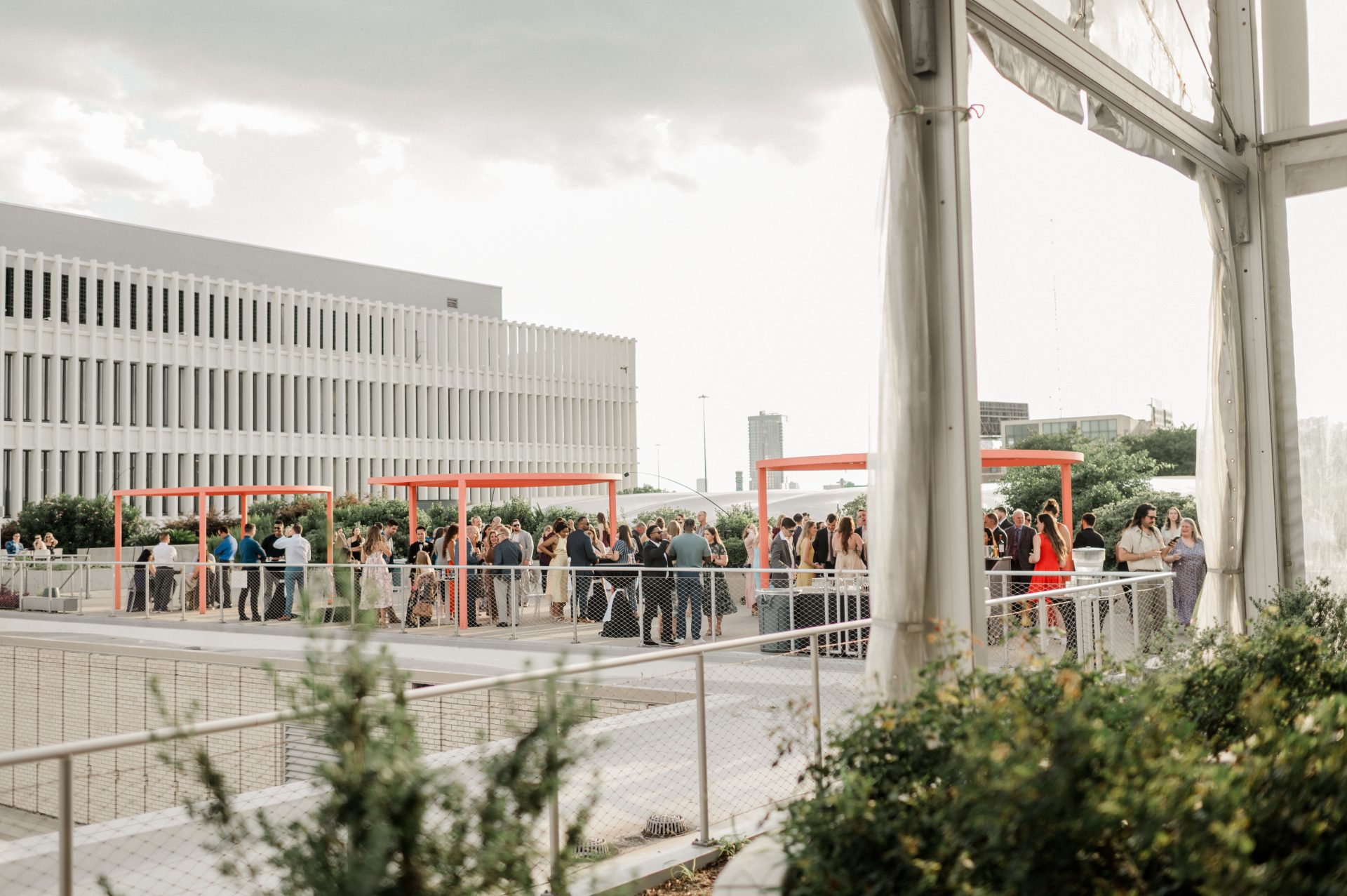 Following their heartfelt ceremony, guests were invited to cocktail hour near Outpost for a vibrant cocktail hour. The energy was electric as everyone mingled, enjoyed refreshing drinks, and took in the panoramic, sweeping vistas of downtown Houston. Karisa and Taylor themselves looked radiant, stealing a quiet moment amidst the beautiful outdoor greenery, basking in the glow of their newlywed bliss. It was the perfect transition, allowing for celebratory toasts and lively conversation as the city lights began to twinkle and shimmer below.