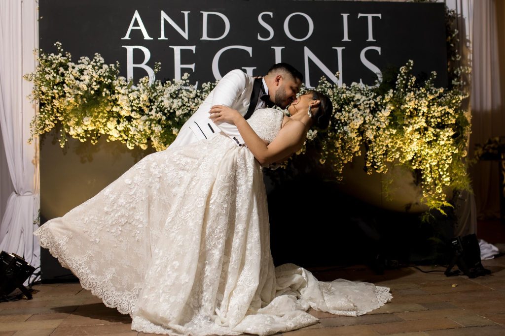 “And so it begins”…Joss and Vic’s glamorous wedding was an event to remember! Breathtaking vignettes were at every turn with abundant floral created by The Flower Studio by APineda and tiered candelabras. Every detail was abundantly tasteful and elegant!
