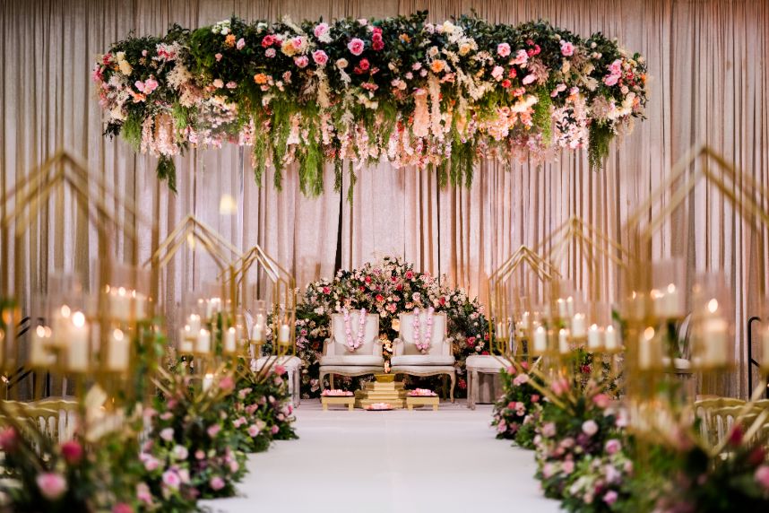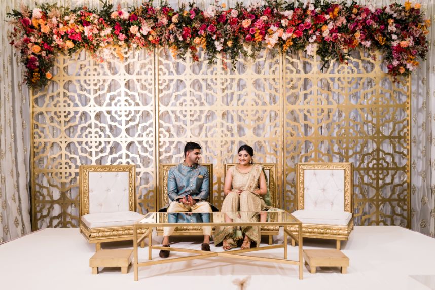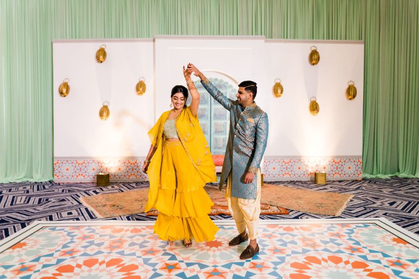 Now, in their grand wedding planned by The StoryBook Event, Priya and Nilay incorporated many traditional elements into all the wedding weekend ceremonies, as well as making some modern adjustments. Over the course of three days, the families celebrated with a Mendhi party, religious ceremonies, wedding ceremony, and reception, all clad in vibrant colors and modern, romantic design. Priya did a first look with her dad which was a very sweet memory, followed by the first look with Nilay! From the ceremony and reception onward, the bride says she was swept away in a magical blur, finally relieved of all the stress from planning and enjoying every little moment. “Having Nilay by my side throughout the whole process was just a dream,” Bride Priya says. “My absolute favorite part would probably be Nilay surprising me by joining a dance during his baraat (groom’s procession). He was so confident and excited and blew me away! I felt so special that he would partake in such a grand gesture for me.” We couldn’t be more smitten by their sweet love story or the grand wedding day that came from it all. Read on for a note from Priya and Nilay on their dream wedding maker below!
