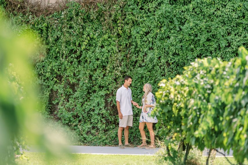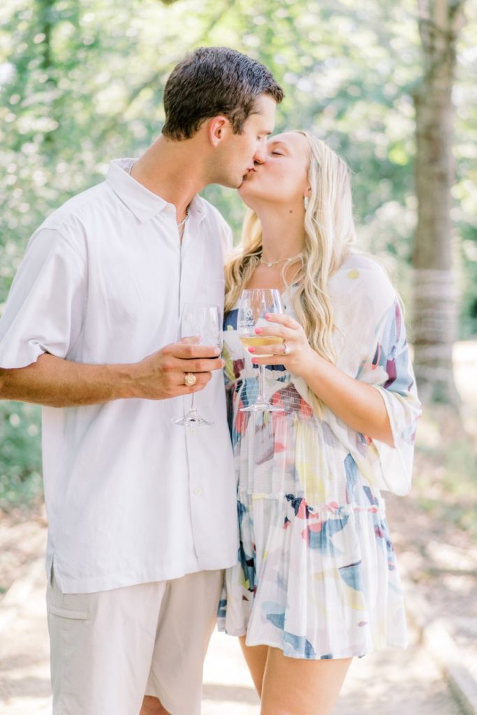Few things bring the waterworks to our eyes like a romantic proposal and Alicia Yarrish Photography captured the exact moment this surprise one took place, followed by an adorable vineyard engagement! Logan planned this picturesque moment for the day after Blair graduated from Texas A&M. The occasion meant that her friends and family would all be gathered in College Station, so it was the perfect time for him to pop the question! Though she had no idea what was to come that day, Blair jokingly reminded Logan before they left “not to forget the ring!” but would be completely shocked at what was actually to come. A romantic local winery made for a magical setting where Logan led her to just the right spot before getting down on one knee and asking her to spend forever with him! After she said yes, Logan and Blair’s family and friends popped out from around the property and surprise showered the two with all the love. Then, Alicia Yarrish Photography came out of hiding to capture a stunning, sun-soaked vineyard engagement session! The day was so full of romance from the sweet proposal to their excited engagement that followed. We can’t wait to see their wedding! Scroll down to see it all play out. Cheers to the soon-to-be Shandleys!