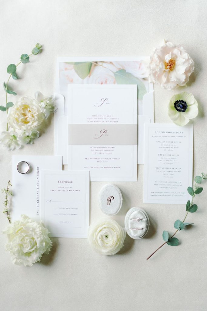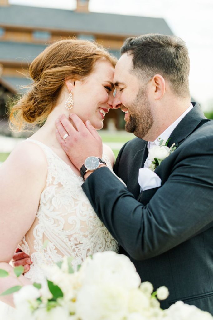 Rachel and Kevin kept their wedding at The Weinberg at Wixon Valley clean, classic, and absolutely timeless. With an abundance of greenery and white florals from Unforgettable Floral, this elegant wedding will make your heart sing. Rachel and Kevin met at a wedding, while Rachel was a bridesmaid and Kevin was a groomsman. The two danced the night away and knew they had something special. Kevin completely surprised Rachel with a romantic proposal with the help of her best friend, Madison. Madison made Rachel believe they were attending a symphony together. However, when Rachel and Madison arrived at their dinner reservation, they were greeted with picture frames and rose petals lining the pathway. Rachel joked, “it looks like someone is about to get engaged,” little did she know that someone was her. Madison told her to look closely, and when Rachel looked into the picture frame, she realized this was her engagement. Kevin got down on one and proposed to the love of his life.
