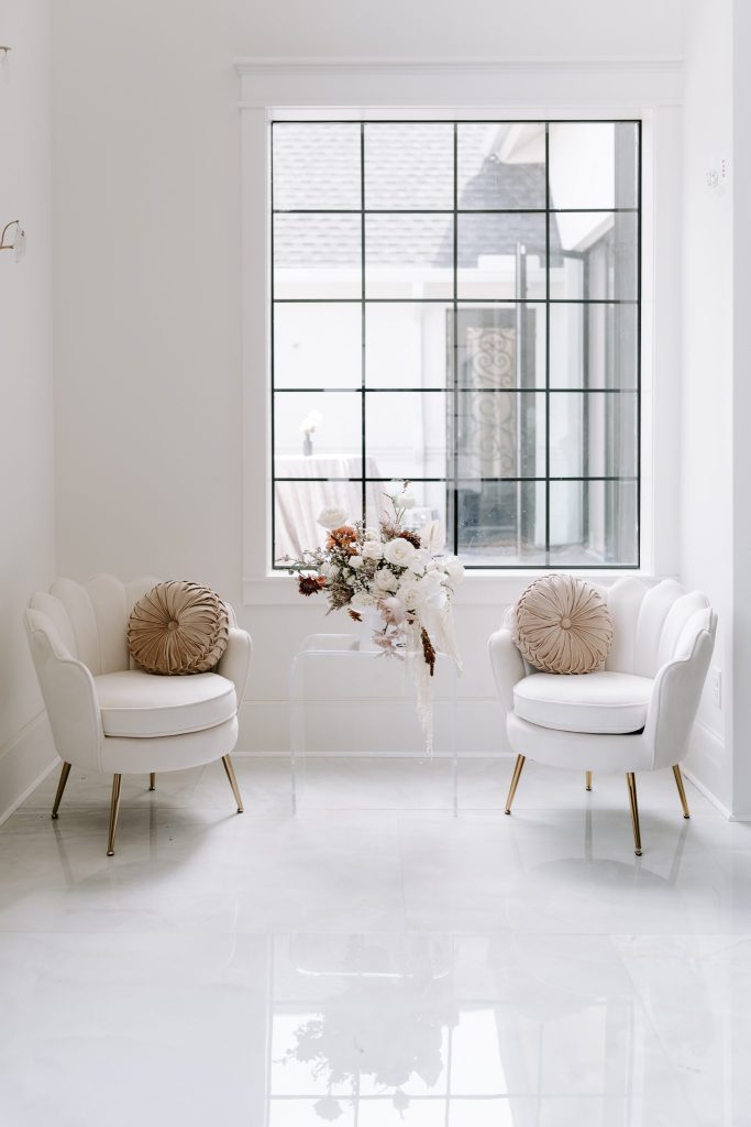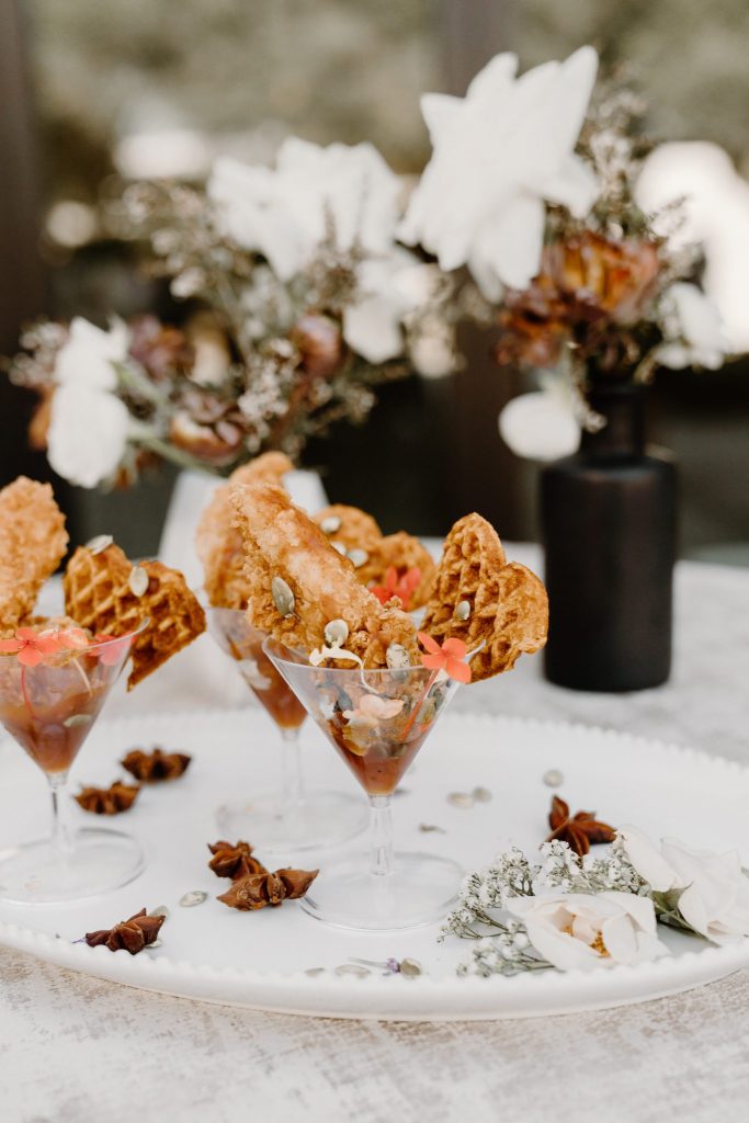 A black and white color palette is timeless for a reason, and our Wilder Love editorial shows just how refined it can get! Curated for the modern-sophisticate, this weddingscape expertly designed by Hopeful Events + Design elevates this classic palette by bringing in lush greenery, accent colors and sleek details. Playing into the high contrasting elements, full white florals jump off of this tablescape graced with a champagne-hued linen from Decor by Dulce, black flatware and gold accent chairs. Erika Geier Photography expertly captured this style-minded scene to perfection, down to the chicken and waffle cups from Hedrick’s Catering and Events – no need to have a refined palette to know that they taste as good as they look! Scroll to see all the details of this refined black and white weddingscape. Cheers!