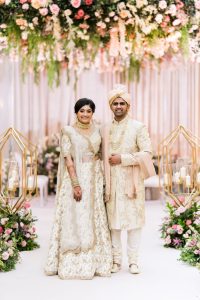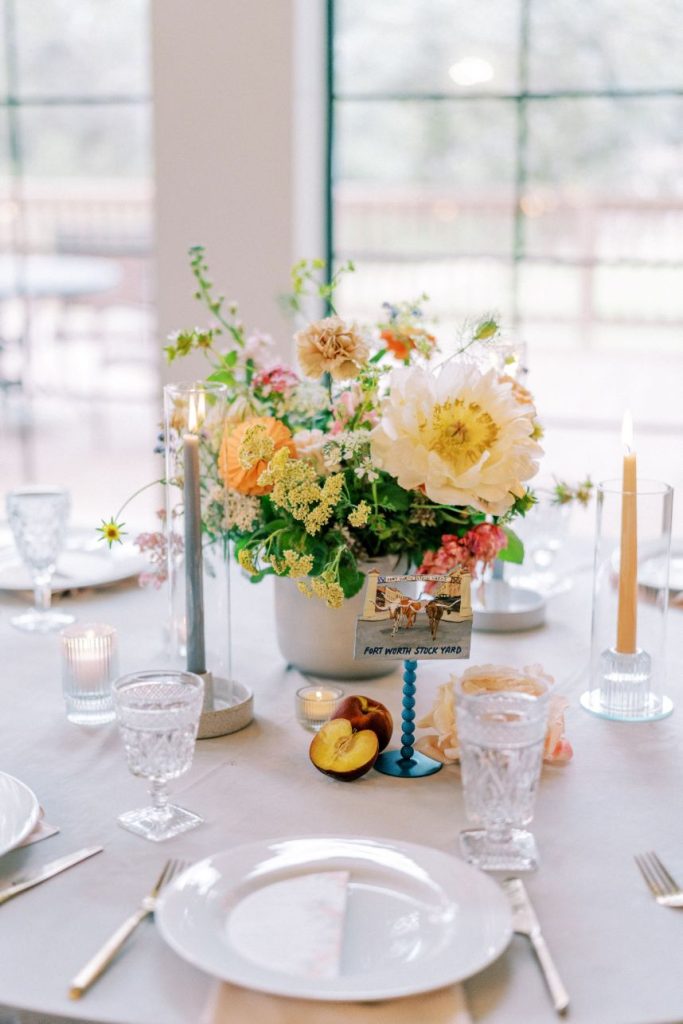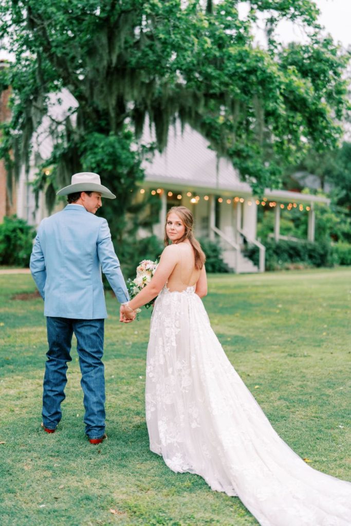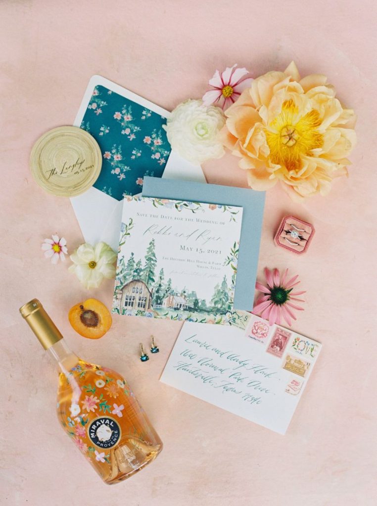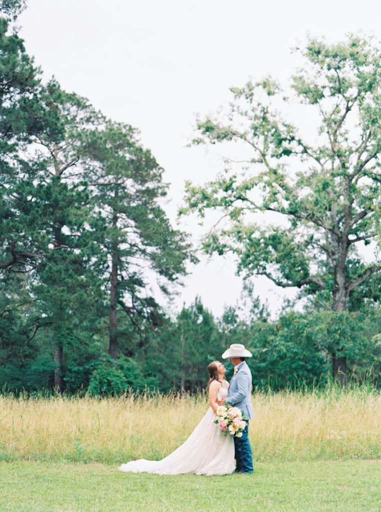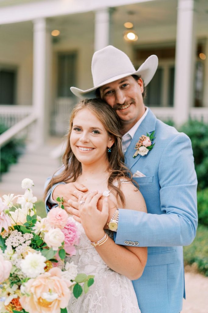 Robbi Flack and Ryan Langley planned a day filled to the brim with garden florals, meaningful details, and tasteful touches with help from the planners at Epoch Co+ and the result is an exquisite whimsical pastel wedding day! Spring is the bride’s favorite time of the year and she loves when everything is green and in bloom. Therefore, it was a no-brainer that Robbi and Ryan tie the knot in a wedding that carried the same fresh, springtime feeling full of color. Shades of peach, dusty pink, blue and yellow were the main palette for their outdoor ceremony and romantic indoor reception, where long tables and organic wood seating from Loot Rentals give a magical, fairytale feel to the room.