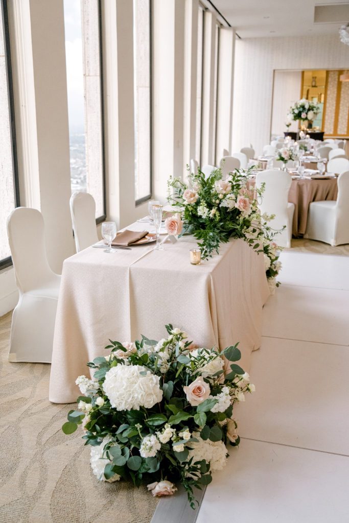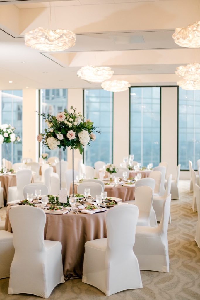 The Stansbury wedding was quite the romantic downtown affair. After a beautiful ceremony, the celebrations continued at their reception, which was all things style and grace. In a window filled room, creams, pinks, and champagne colored floral and decor filled the space as the happy couple and their guests wined and dined into the night.
