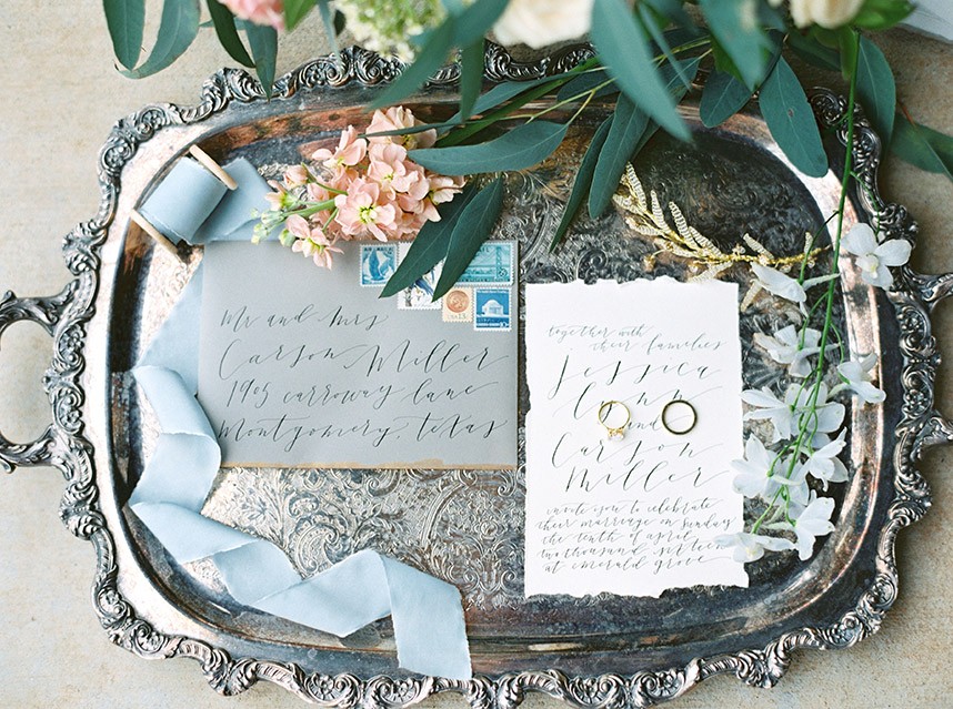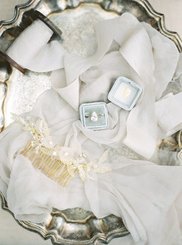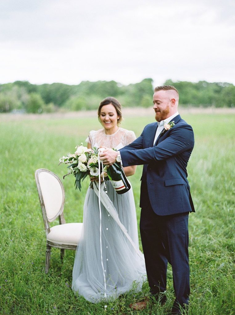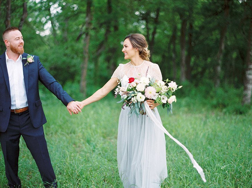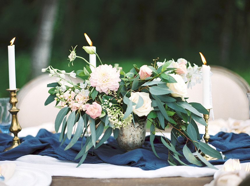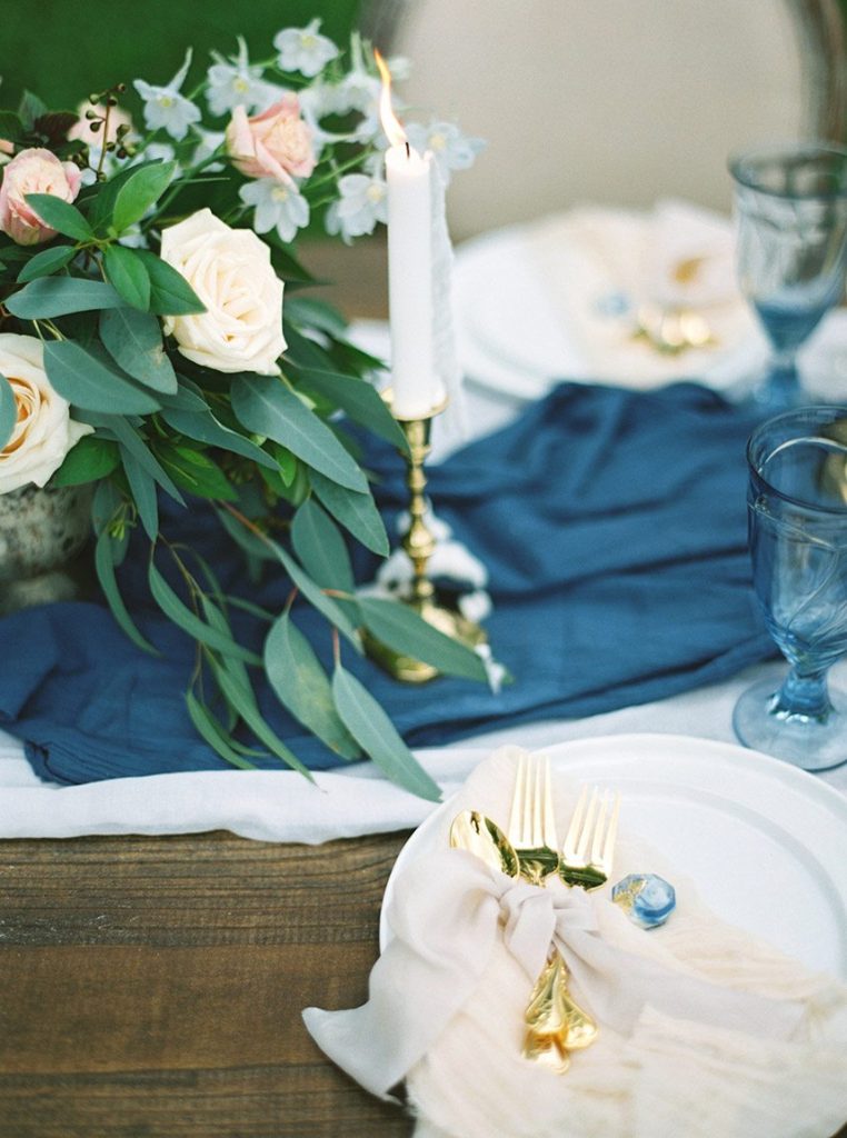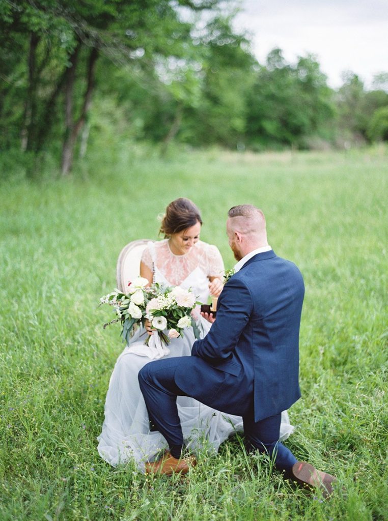 From the photographer, Courtney Leigh Photography: “This beautiful wedding inspiration shoot was inspired by earthy elements, neutral tones and pops of gold and dusty blue. The best part? This styled shoot romantically turned into a real life proposal for the sweet couple, Chalie and Andrew. It was such a memorable moment to capture and the moments following the proposal are my absolute favorite images from the shoot. This one definitely goes down as an all time favorite of mine throughout my photography career and so many talented teams helped bring my vision to life.