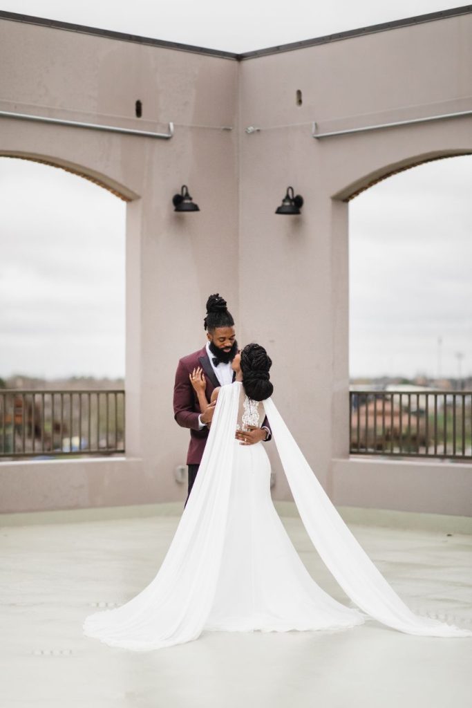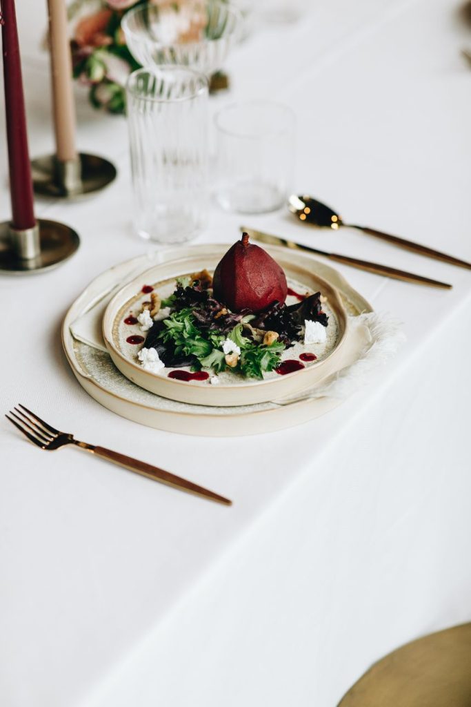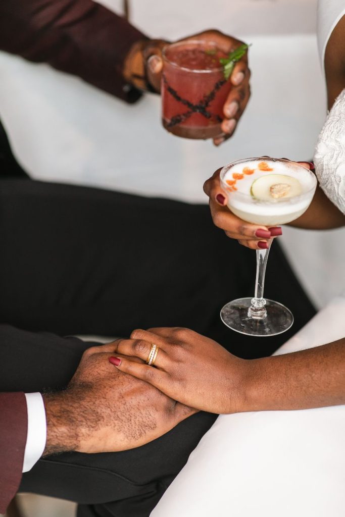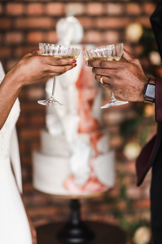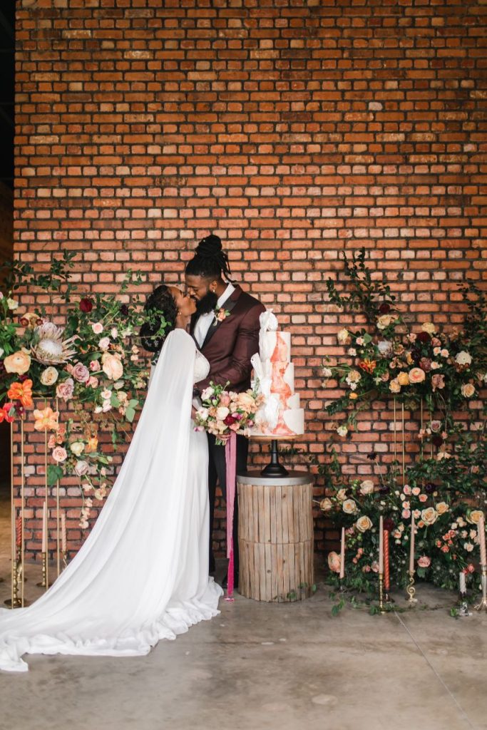 An abundance of florals paired with intimate, moody lighting is the recipe for some seriously unforgettable modern refined wedding inspiration – captured artfully by BLVD Photography! Salads, sips and sweets can be found among the organic linens of these tablescapes along with taper candles of elegant shapes and autumnal hues, scattered around frames in a whimsical and effortless manner to really set the mood. Beautiful, rustic wooden and opulent gold rentals from Swift + Company contrast perfectly with delicate petals in these romantic, woodland-esque scenes. This model looks absolutely radiant in an eclectic bridal look featuring the most incredible gown and cape combo we’ve ever seen from The Princess Bridal! There is so much obvious chemistry within the stunning scenes of this styled shoot and this modern pair looks so elegant together. Between the moody ambiance, the yummy-looking cocktails, and the bridal attire fit for the runway, we could never pick a favorite detail from this styled shoot! Keep scrolling to check it all out for yourself in this oh-so-romantic, refined wedding inspiration. Cheers!