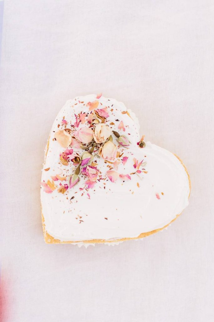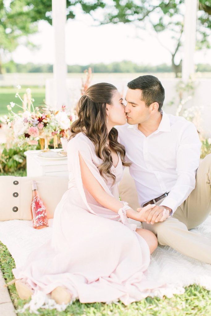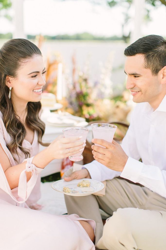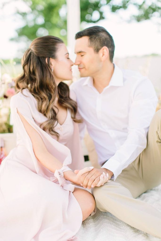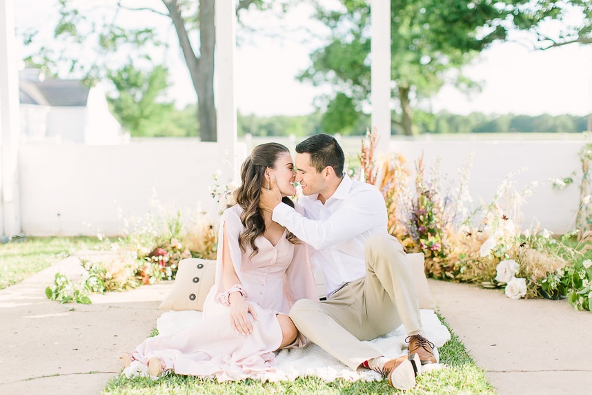 From the planner: “Everyone loves a sweet picnic celebration! This intimate picnic was surrounded by delightful organic floral, decadent morsels of fruit and cheese, and the cutest heart-shaped cake I have ever seen. Ashley and Alex took us on a journey through their beautiful love story, and it was so refreshing to witness! A huge thank you to all of the incredible vendors and friends who brought this shoot to life!”