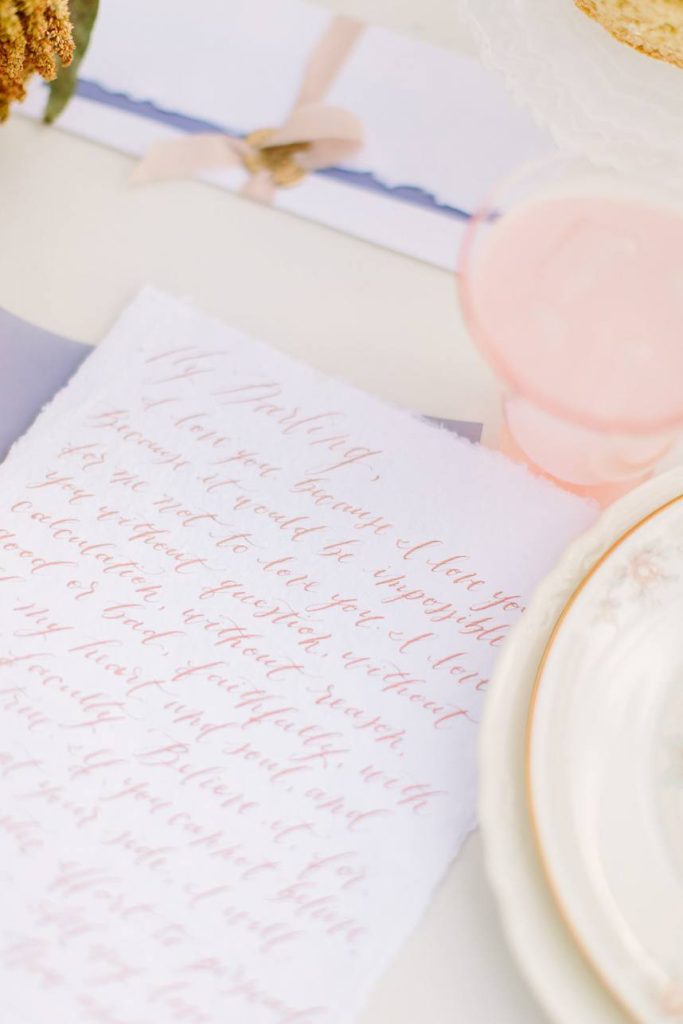 What better way to celebrate a sweet engagement this season than with an intimate romantic summer picnic? This organically styled inspiration shoot from Tammy’s Table and Edges Wild Studio had us doing double takes – every detail of the shoot is so darling and dreamy! We love how the floral arrangements incorporate seasonal selections that give the florals a natural, freshly picked look, and how the romantic picnic setup includes fresh fruits, delicate sweets and a personalized wine bottle. So sweet! Half Moon Lettering added a beautiful love letter to help tell this summertime love story in a treasured keepsake. Cheers to summer-love-turned forever-love and beautiful celebrations with the ones you love most. Happy scrolling!