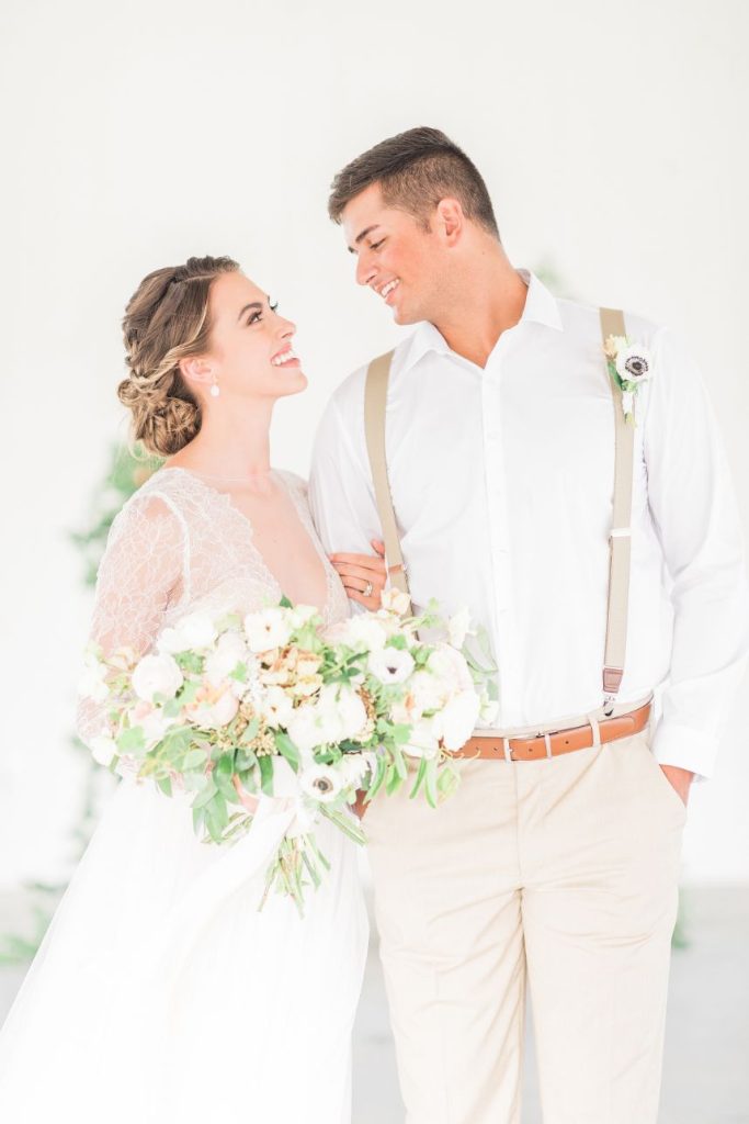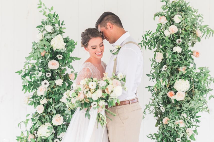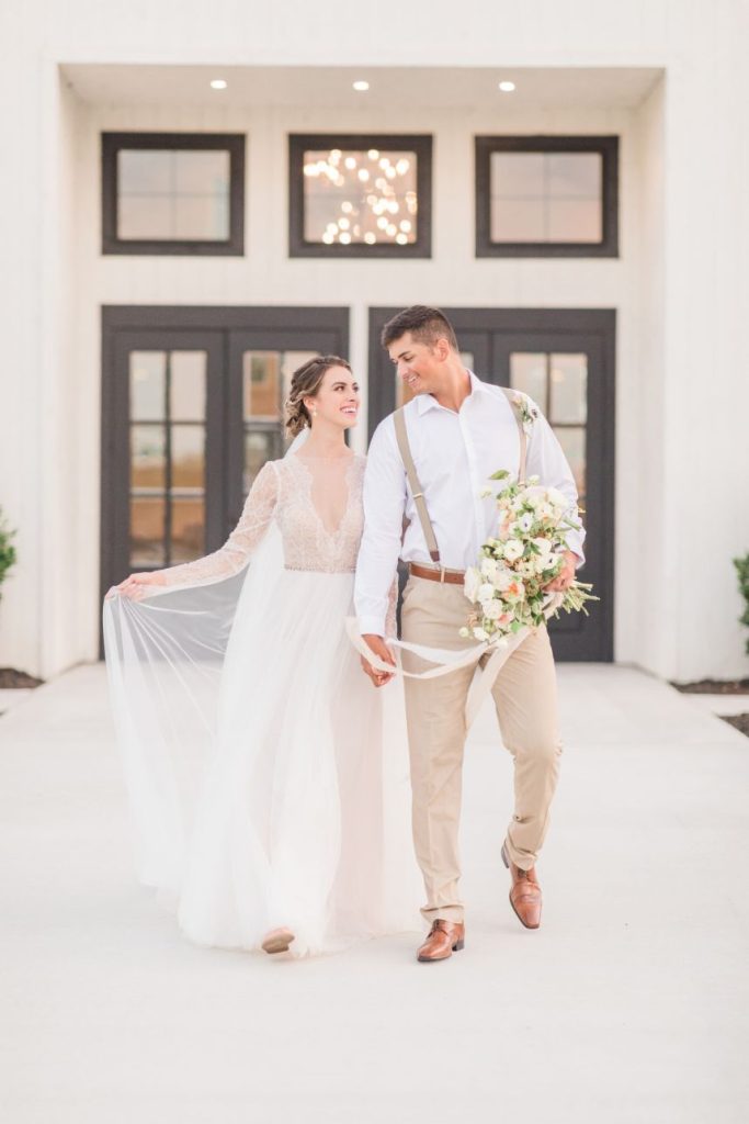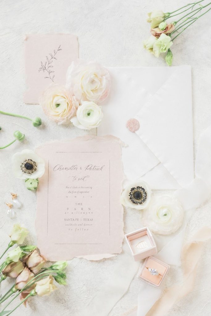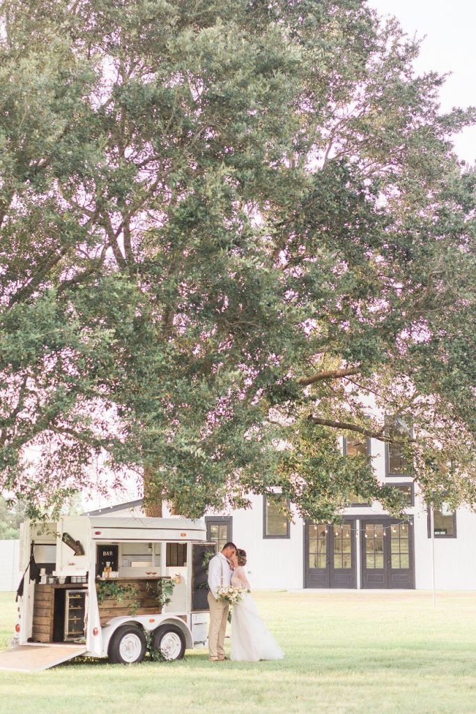 We love the way soft and delicate elements combine in this romantic wedding inspiration to create something feminine and oh-so-fab! Located just outside of Santa Fe and established in 2019, The Barn at Willowynn still hasn’t worn the new off their gorgeous venue that brings a sophisticated charm to the Galveston County wedding scene. Bright, neutral interiors and a stately modern farmhouse-style exterior invite you to customize this space to your liking while inviting 200 of your closest friends to celebrate alongside you. Conveniently located near both the city and sea with numerous attractions and easy access to airports and hotels, the barn has plenty of amenities to boast, especially one that is likely their most picturesque – a gorgeous rustic interior on a backdrop of willow trees. Modern and rustic in all the right ways, this venue serves as the perfect setting for this soft, romantic styled shoot. Spacious outdoor area means you have room for a few vendors on wheels if you choose, and these faux-newlyweds look absolutely smitten, clinking cute cocktails from the mobile bar to the start of their forever! From this bride’s sleeved, lace-covered gown to her braided updo and flawless bridal glam, romance is embodied in every single wedding scene! Keep scrolling to see the entire gorgeous gallery of this soft, romantic wedding inspiration for yourself. Cheers!