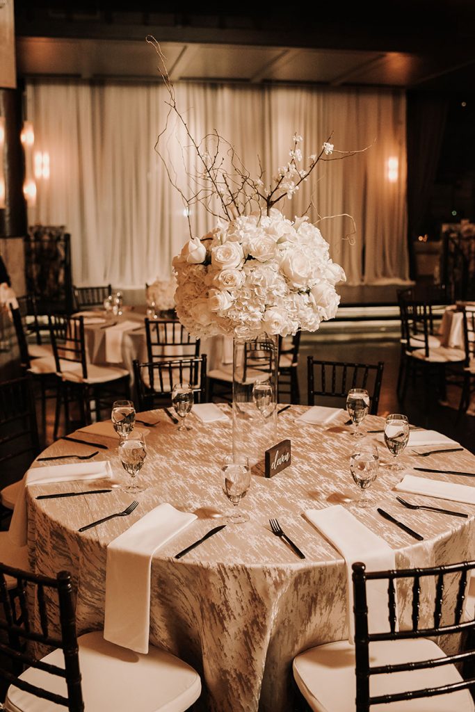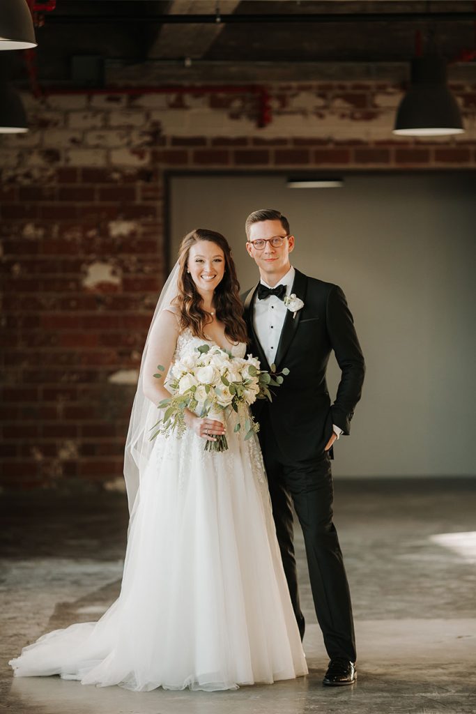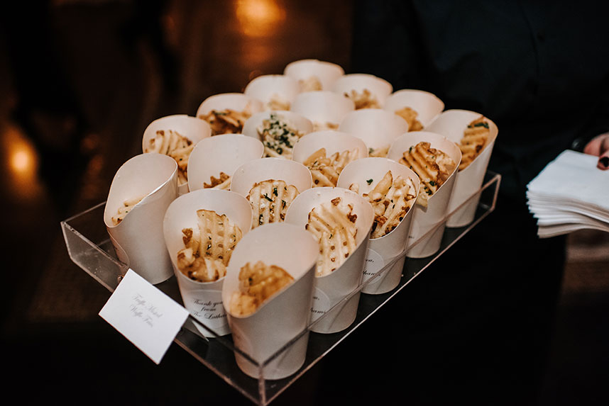 This romantic winter wedding had so many metallic, black and white details, and we are totally here for all of the elegance. Kelsey Curcio and Christian Latham’s wedding day was like a winter wonderland! Captured flawlessly by Tiny Mum Photography, we get to relive their big day and all the gorgeous details that came with it. Kelsey fit in perfectly with the winter wonderland vibe by looking stunning in her Enaura Bridal gown from Mia Bridal Couture. After a sweet ceremony (you have to read about it from the bride below!), the couple celebrated with their closest friends and family with a scrumptious meal from A Fare Extraordinaire – you’ve got to take a peek at those waffle fries – YUM! Any brides planning a romantic winter wedding are sure to love this one! Cheers to Mr. and Mrs. Latham!