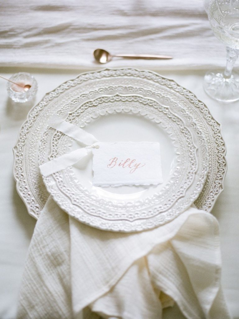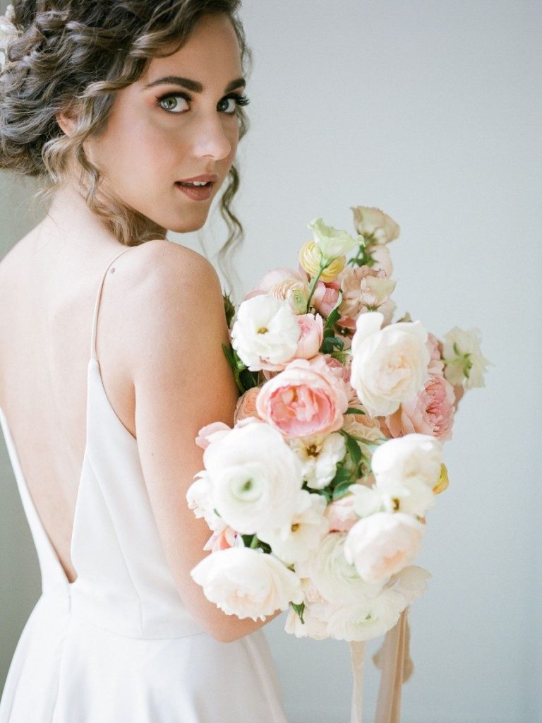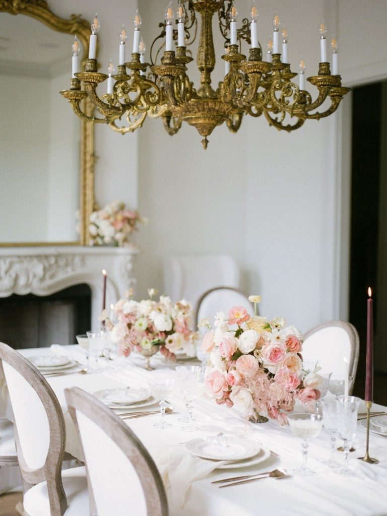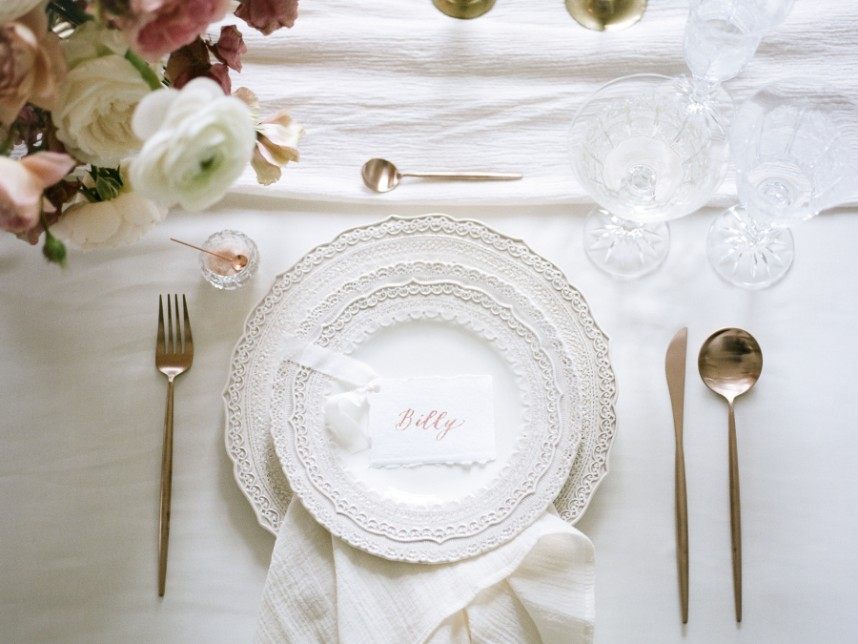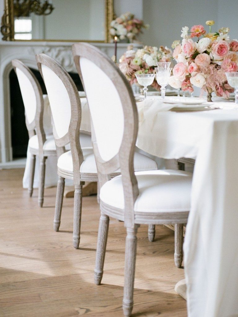 One of our favorite Houston venues played host to this romantically classic bridal inspiration shoot dreamed up by Houston wedding florist Ode to Joy Flowers, and the results? Simply amazing! With The Creative Chateau’s timeless and traditional backdrop, the clean and sophisticated white and blush color palette worked beautifully. Delicate fine china and French country-inspired seating flanked the tabletop, while gold and brass accents along with Ode to Joy‘s stunning florals in shades of baby pink added just the perfect amount of contrast. Dreams and Nostalgia’s gorgeous calligraphy kept in tone with the elegant aesthetic, as did the bride’s coppery eyes and updo of soft curls, accentuated with a statement hairpiece and her oh-so-feminine open-back gown. While the tone of the venue brings in a little old-world charm, we love that the florals lean to the more freeform side, loosely and effortlessly gathered to soften the space and keep the romantically classic feeling alive. Delicate touches like the antique brass vases, calligraphed name place cards and hand-tied silk ribbon on the invitation suite ensure personal, thoughtful moments throughout the scene. Ode to Joy did a fantastic job with this dreamy bridal inspiration, and we couldn’t love it more! Cheers!