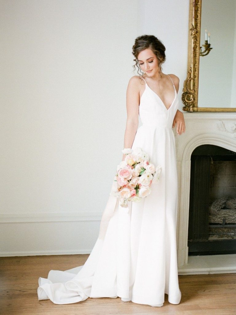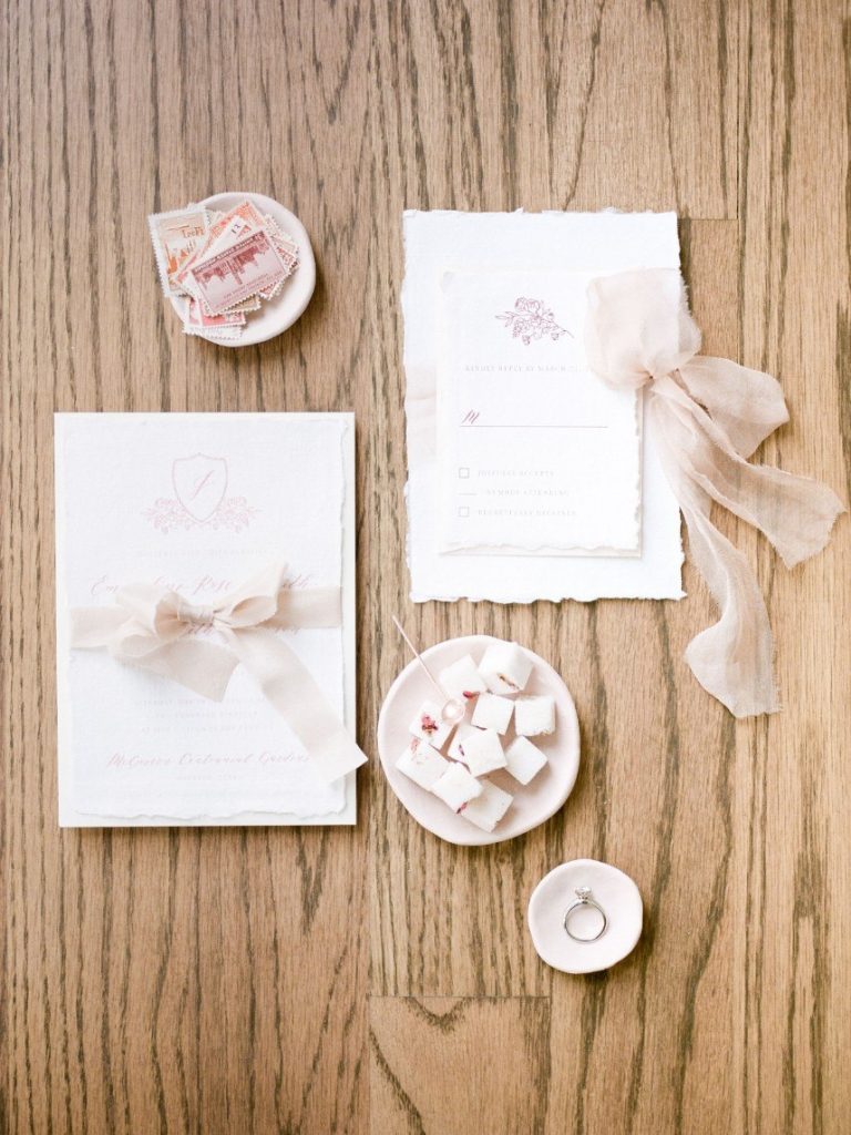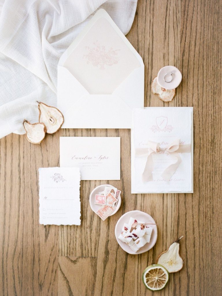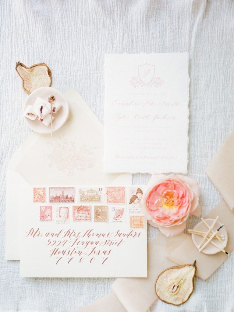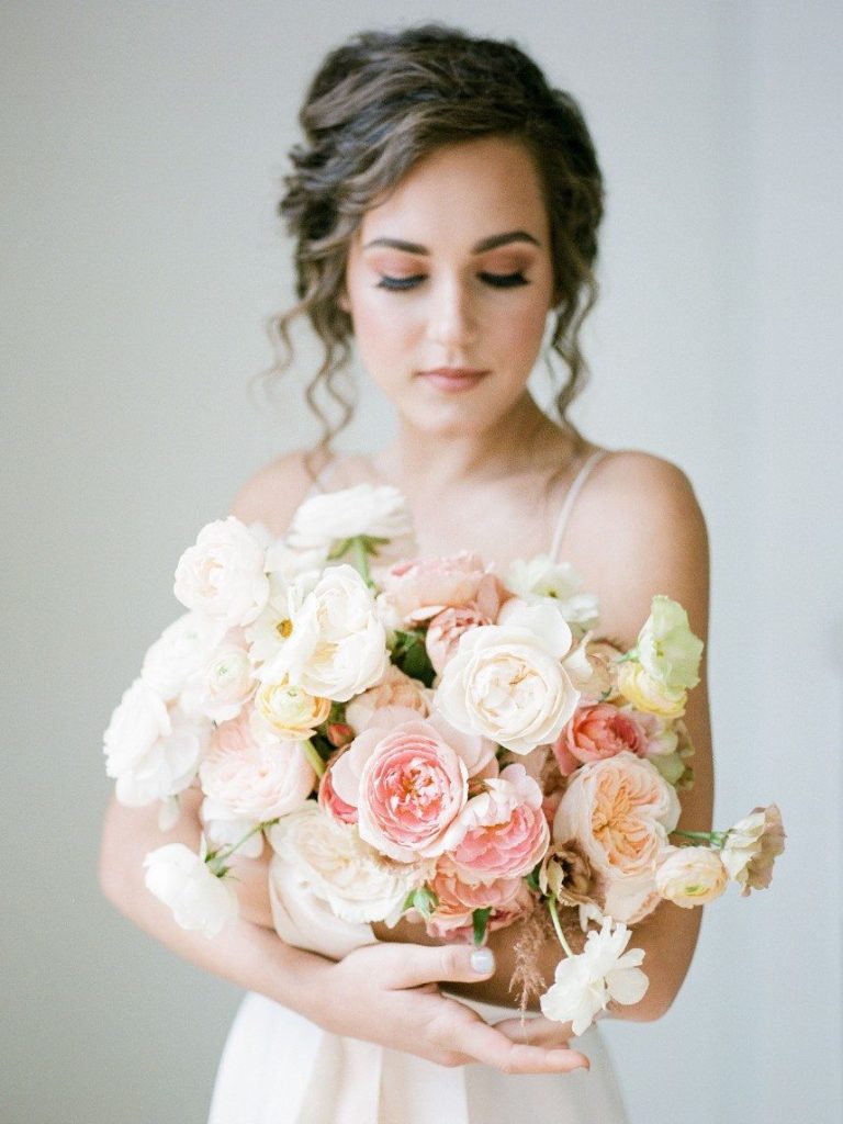 One of our favorite Houston venues played host to this romantically classic bridal inspiration shoot dreamed up by Houston wedding florist Ode to Joy Flowers, and the results? Simply amazing! With The Creative Chateau’s timeless and traditional backdrop, the clean and sophisticated white and blush color palette worked beautifully. Delicate fine china and French country-inspired seating flanked the tabletop, while gold and brass accents along with Ode to Joy‘s stunning florals in shades of baby pink added just the perfect amount of contrast. Dreams and Nostalgia’s gorgeous calligraphy kept in tone with the elegant aesthetic, as did the bride’s coppery eyes and updo of soft curls, accentuated with a statement hairpiece and her oh-so-feminine open-back gown. While the tone of the venue brings in a little old-world charm, we love that the florals lean to the more freeform side, loosely and effortlessly gathered to soften the space and keep the romantically classic feeling alive. Delicate touches like the antique brass vases, calligraphed name place cards and hand-tied silk ribbon on the invitation suite ensure personal, thoughtful moments throughout the scene. Ode to Joy did a fantastic job with this dreamy bridal inspiration, and we couldn’t love it more! Cheers!