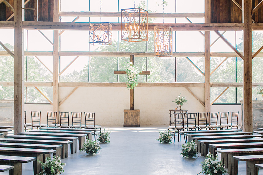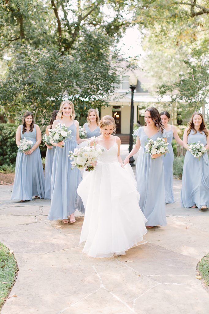 Makayla Lara and Conner Sauer’s rustic farmhouse wedding was light and airy and full of love! The beauty was in the simplicity as the couple subtly integrated their lovely color palette of dusty blue and neutral earth tones. Cakes by Gina created a white, textured cake featuring a natural-looking flower arrangement for just the right amount of detail. Next, Love Birds & Co. provided the bride and groom with charming decor and rentals that complemented the southern vibe. They also managed to incorporate the color palette – just look at that vintage dusty blue furniture! Nothing could have been more perfect. Makayla’s hair and makeup was equally flawless thanks to our friends at Butter Artistry. Her chic up-do and effortless makeup was oh-so elegant and enhanced all her natural beauty! Lastly, there to capture every precious moment with excellence was Mustard Seed Photography. We wish Makayla and Conner all the best! Keep scrolling to find out the bride’s favorite memory from the big day!