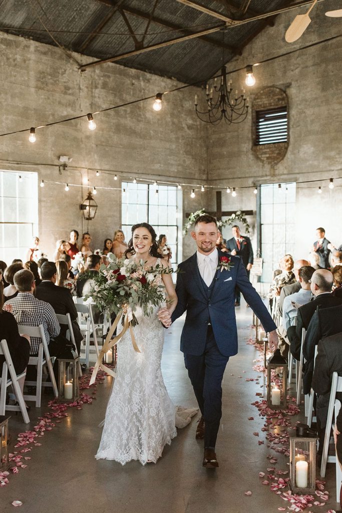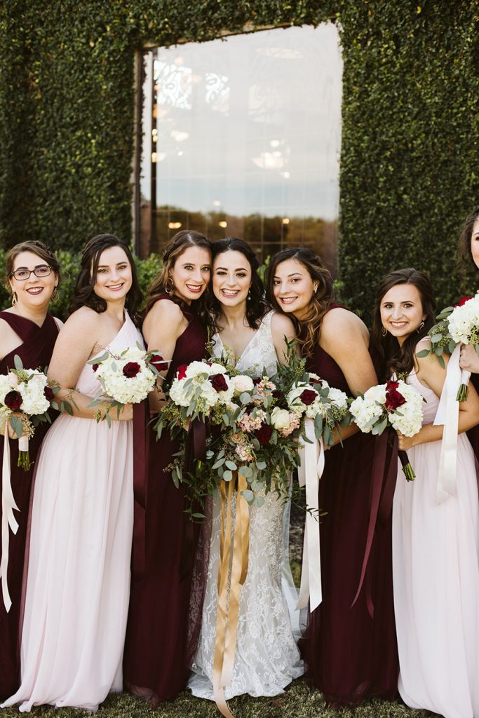 This rustic blush and ruby red wedding is giving us all the fall feels! With the perfect blend of rustic and industrial, all perfectly captured by Ali Takes Photographs, this one is a must-see. Olivia Montgomery and Benjamin Lechmann’s wedding day was full of rustic yet industrial details, and we’re totally here for this unusual blend of styles. Olivia’s stunning lace bridal gown from Whittington Bridal perfectly paired with her bridesmaids’ complementing blush and ruby gowns, creating the perfect ensemble. This wedding is truly transporting us right into the cooler weather of the fall, and now we’re just wishing it’d get here soon! Cheers to Mr. and Mrs. Lechmann!