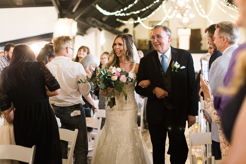 From the bride: “My favorite wedding day memory? Definitely seeing Jeremy as I walked down the aisle. It still makes me tear up when I think about it. I originally wanted to do a first look, but he talked me out of it, and I’m so glad he did. There was no better feeling than walking down the stairs with my dad by my side, through the guests, and making eye contact with Jeremy. He was bawling, I was bawling, and all of my family was bawling. Having both brothers and sister standing beside Jeremy didn’t help either, as I could see so much emotion in their eyes. Needless to say, I was a wreck, but did my very best to still smile. It was the sweetest moment of the entire night, and we’ll never forget it.”