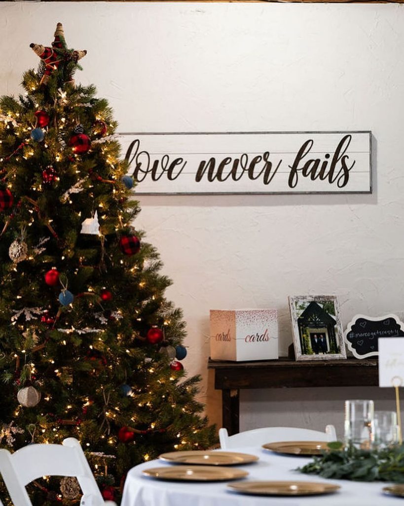 After touring 7F Lodge & Events in January 2022, Rusty and Marco finally booked their dream venue a little over a year later! Rusty said “7F just felt like home”—and it truly was the perfect place to start their forever! Decor and rentals from Premiere Events with details of red and green made their December wedding complete.