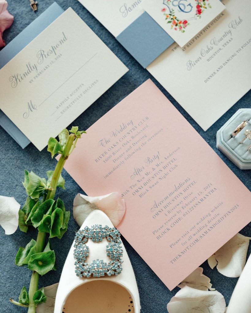 ⁠Samantha and Griffin’s wedding was a DREAM! From the beautiful shades of pink, blue, and green, to the dress, to the invitations from Bering’s, every last detail was perfect!